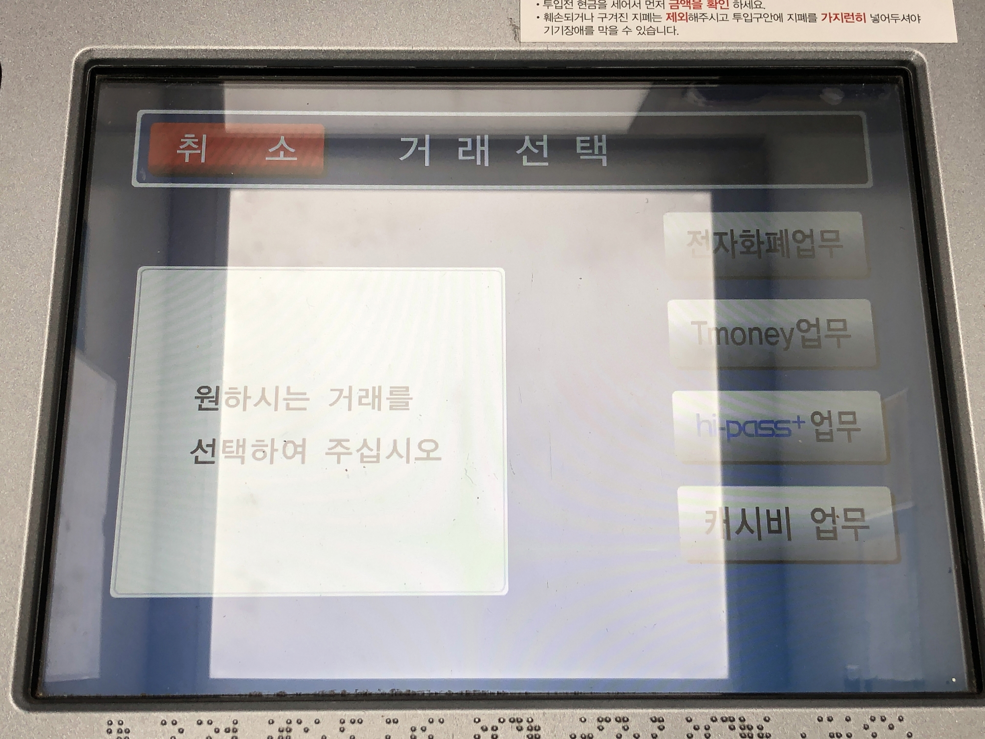 전자화폐 버튼을 누르고 카드를 집어넣으니
