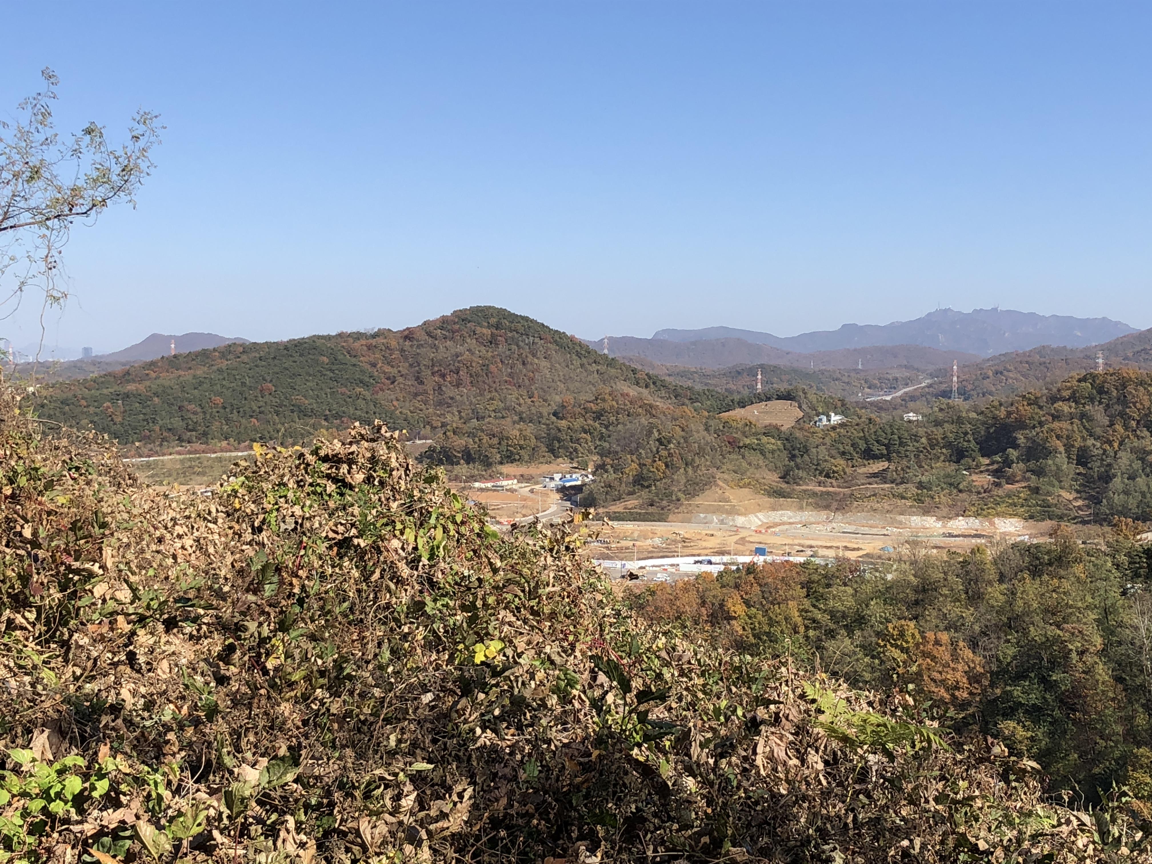 보이는 모습은 산 곳곳에 세워진 고압선 송전탑과