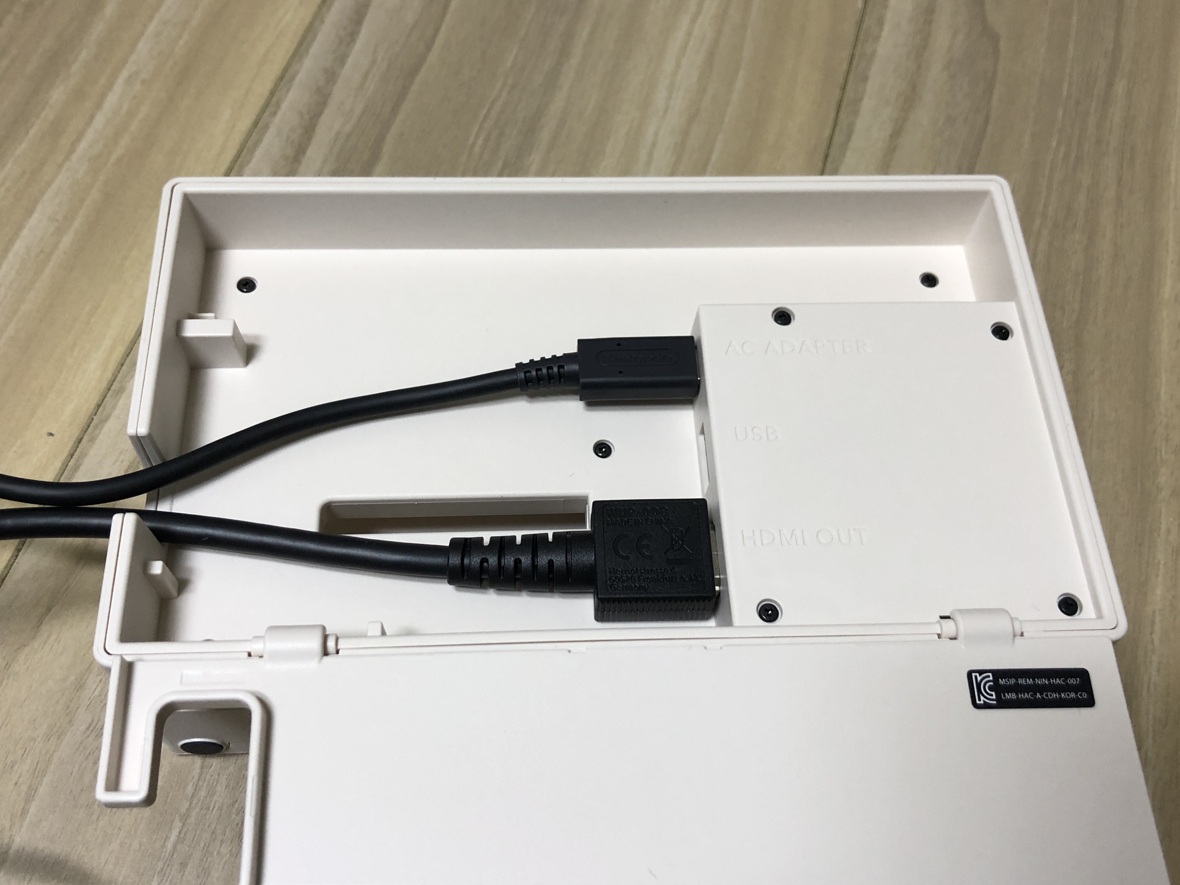 전용 독에 전원 공급용 USB Type-C 케이블과 TV 연결용 HDMI 케이블을 꽂아
