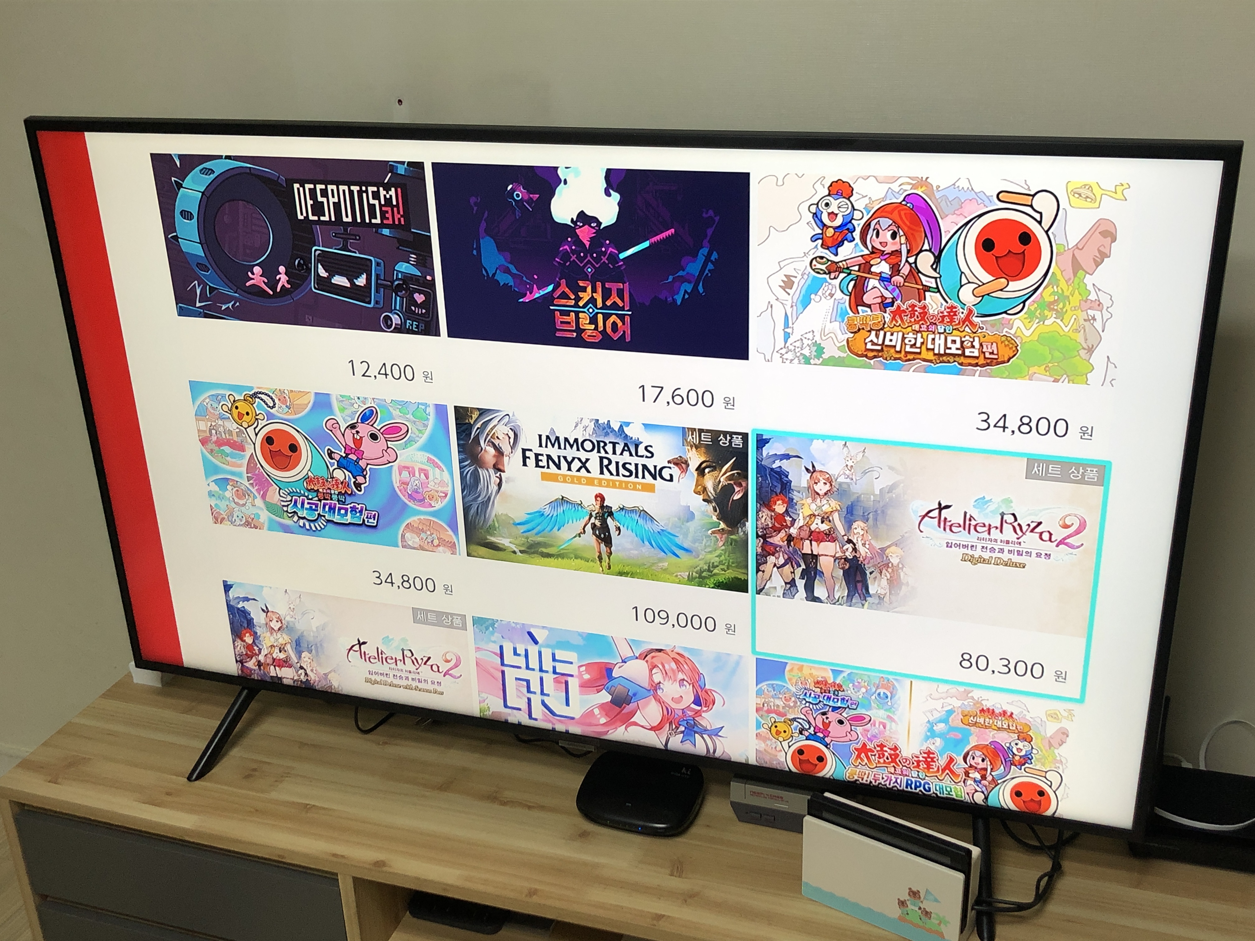 스위치를 독에 꽂고 큰 화면으로 조작해봅니다.