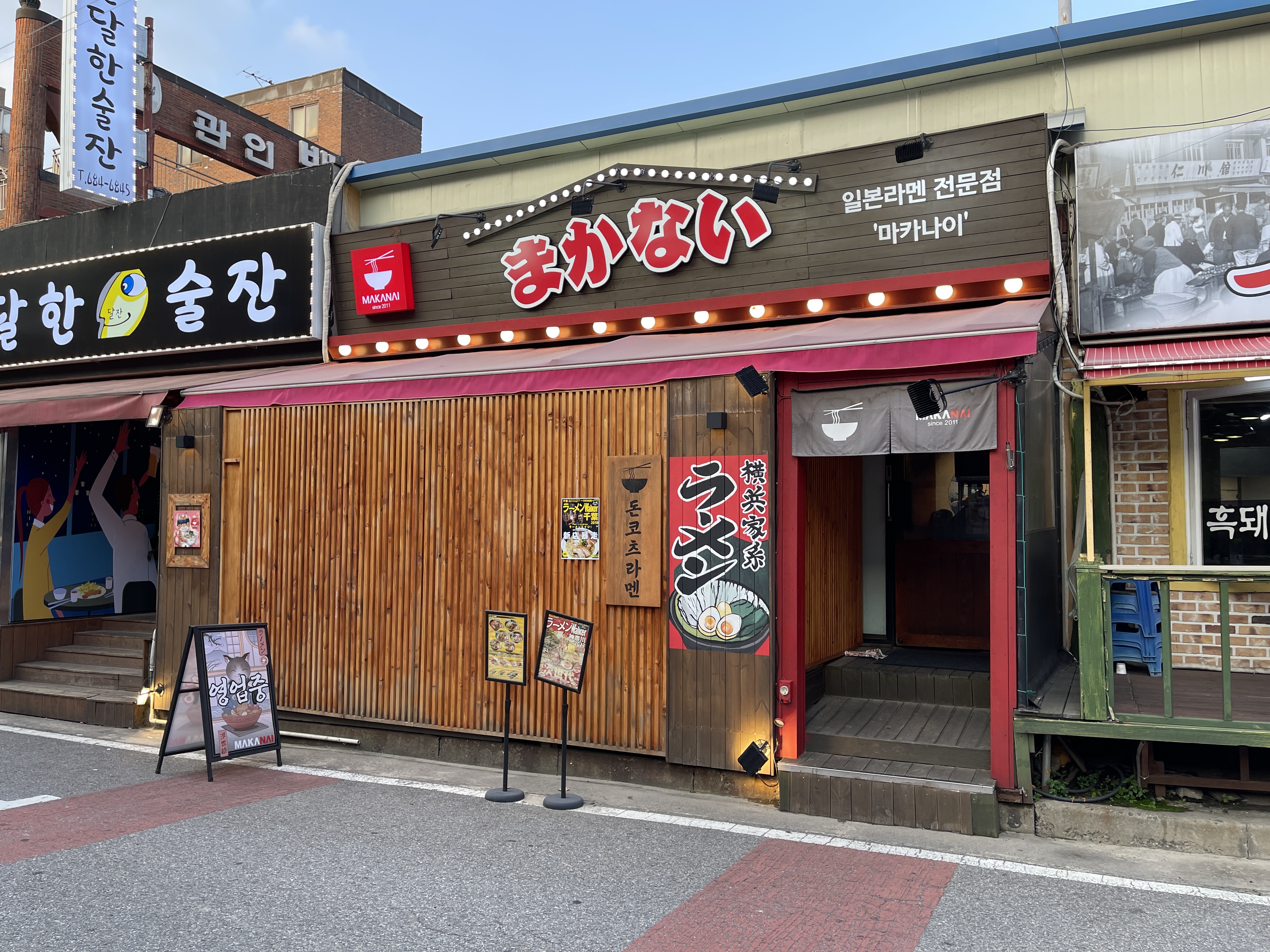 이런저런 술집을 지나 외국 요리를 파는 서로 마주 보는 식당을 두 곳 발견했는데
