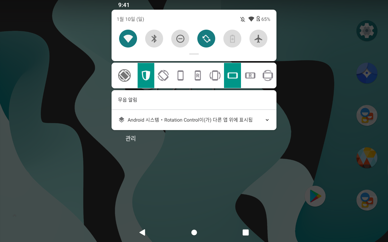 Rotation Control과 같은 앱으로 화면을 돌려야 합니다.