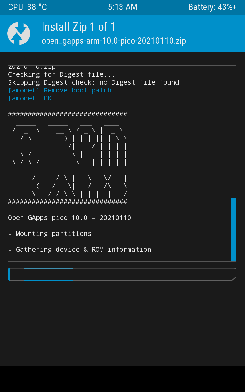Open GAAPS에서 받은 arm-10.0-pico 파일을 설치하고 재부팅하는 것으로 설치는 끝.