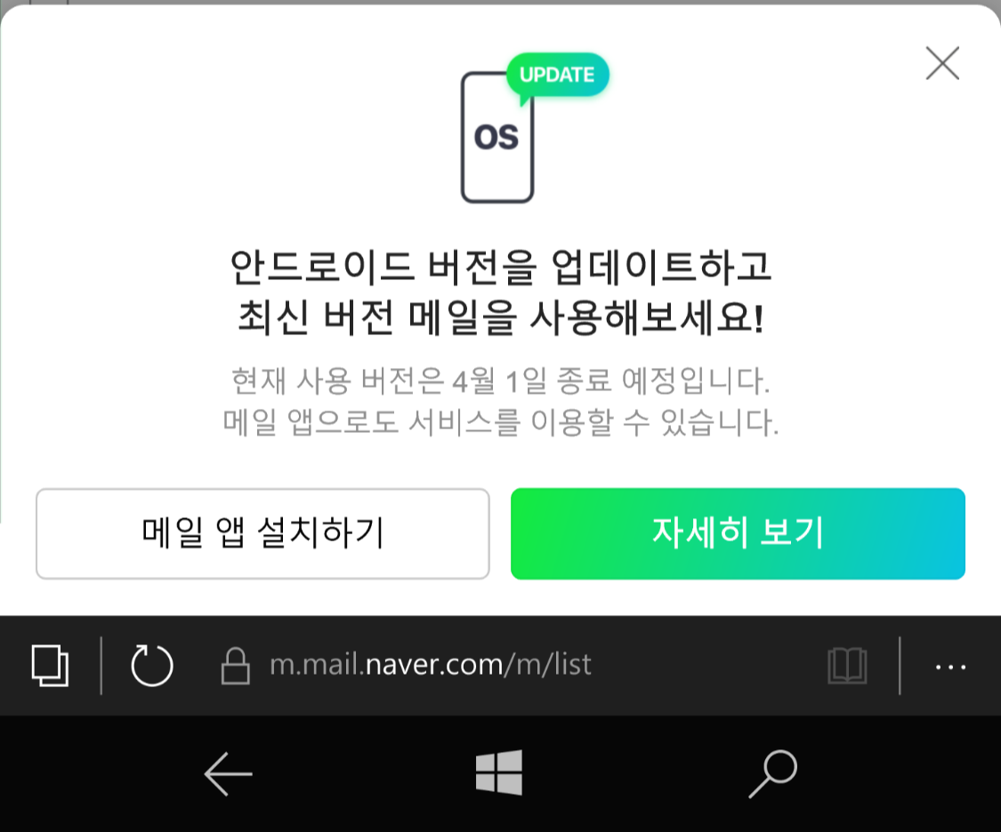 네이버 메일로 들어가 보니 특이하게 안드로이드 폰으로 인식을 합니다???