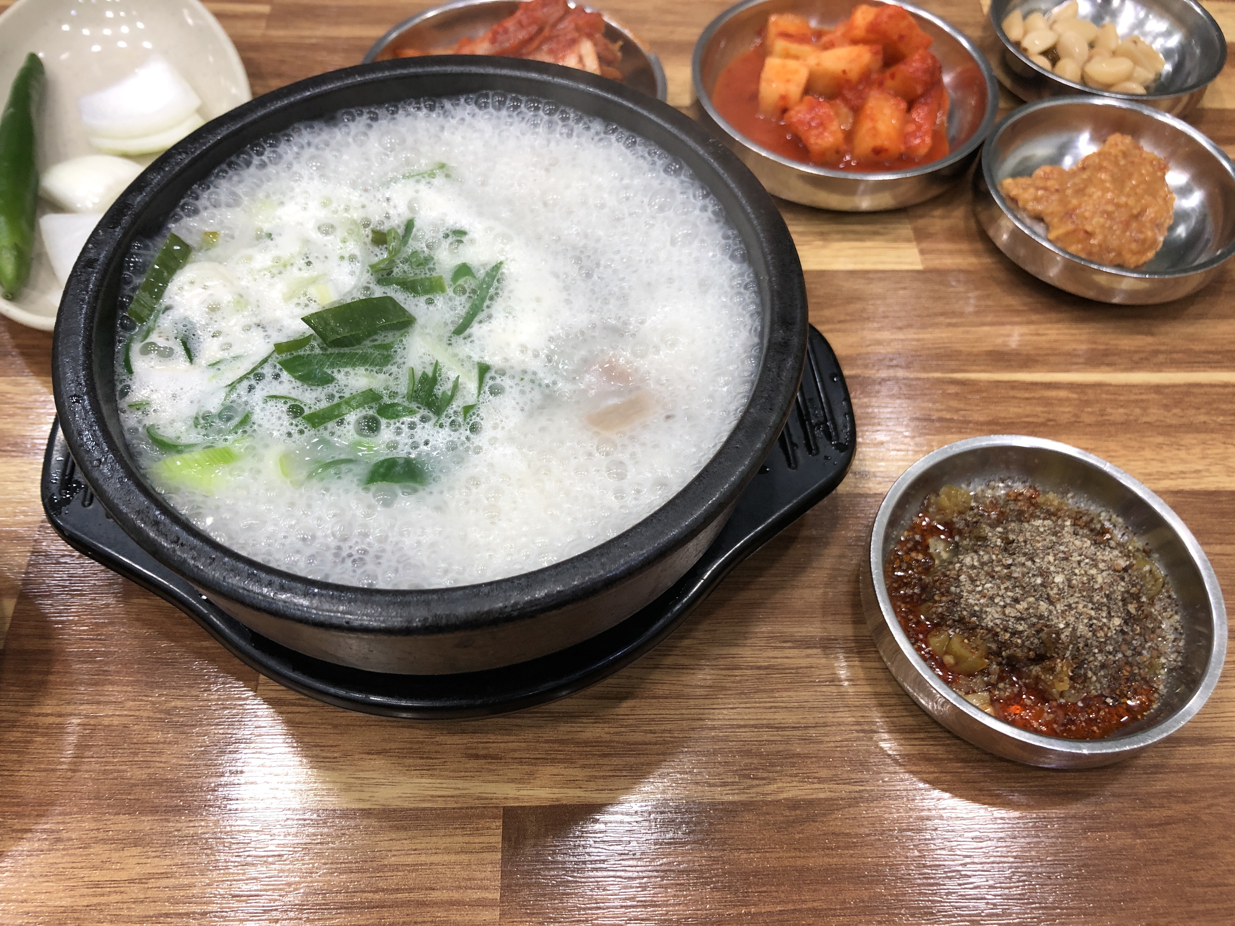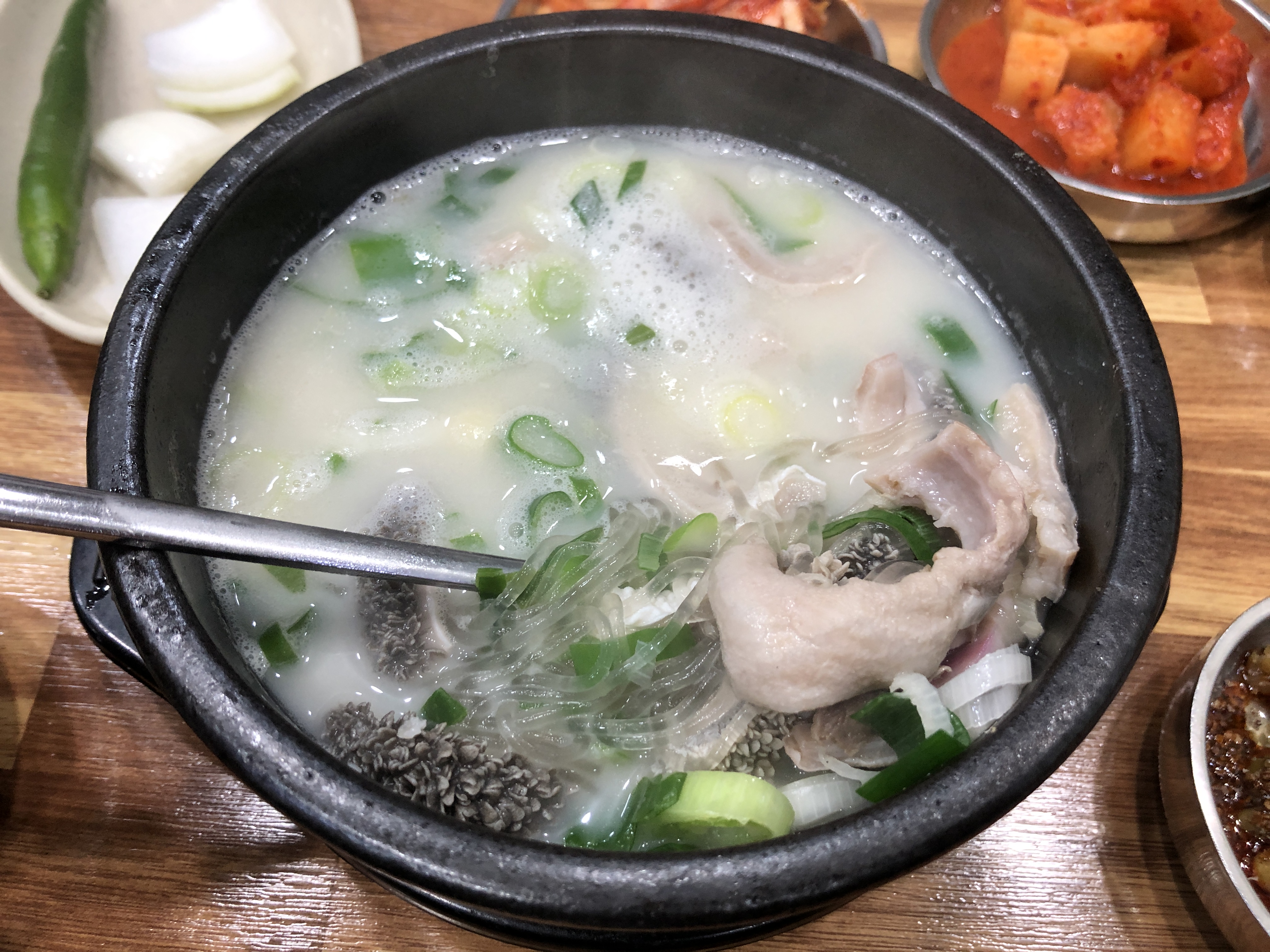 내장탕 하면 떠오르는 시뻘건 국물이 아닌 하얀 국물이 담긴 내장탕입니다.