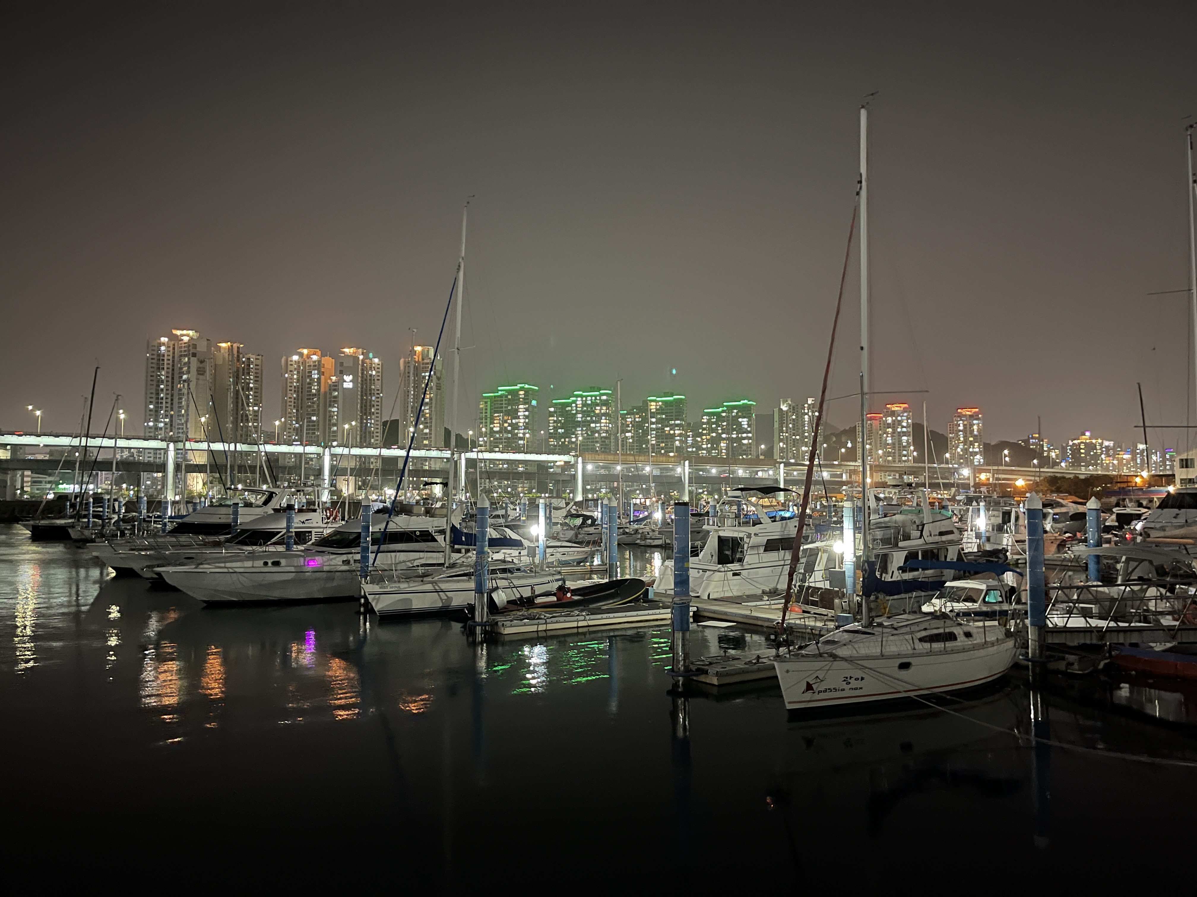요트가 둥둥 떠있는 수영만 요트 경기장을 돌아다니다