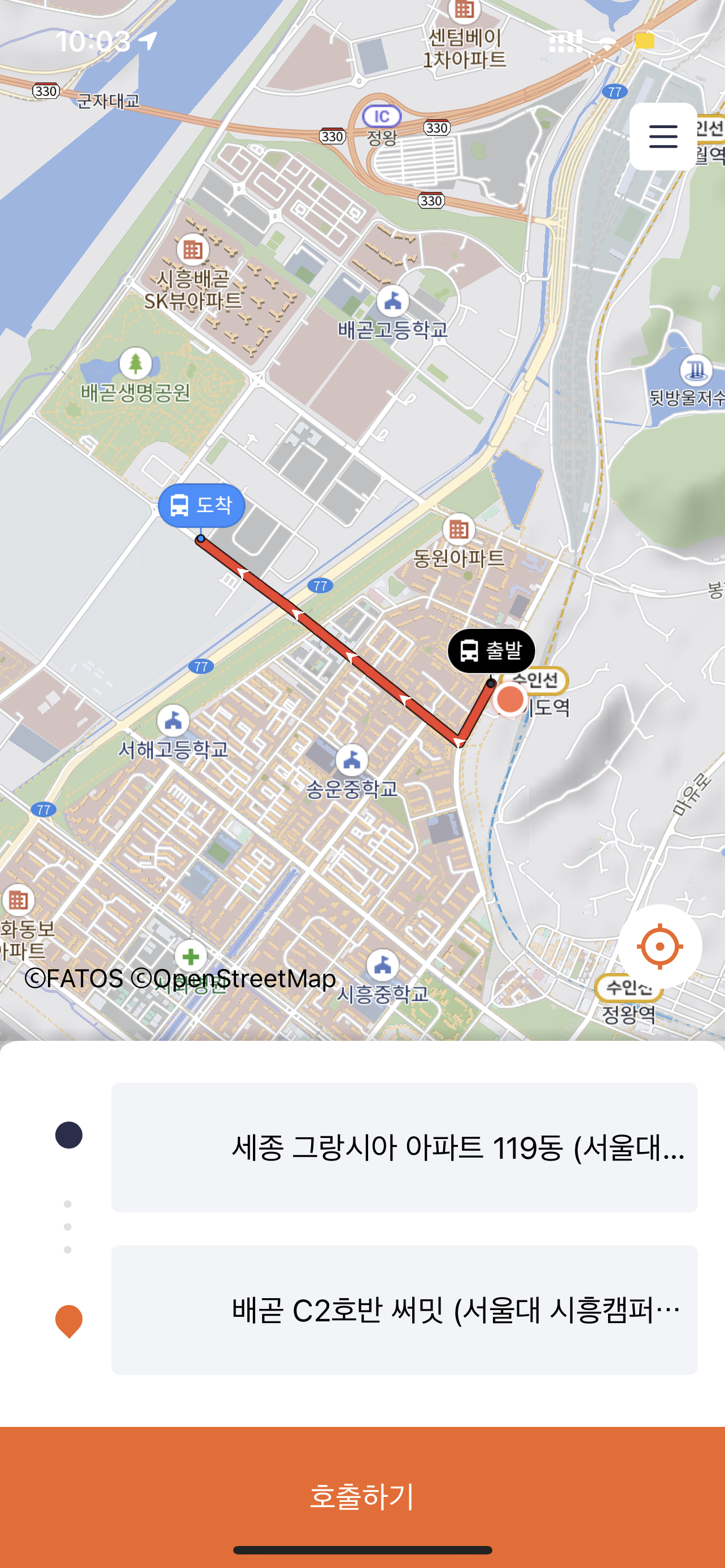 마중 앱을 받아서 회원가입한 뒤 호출하기를 눌렀습니다.
