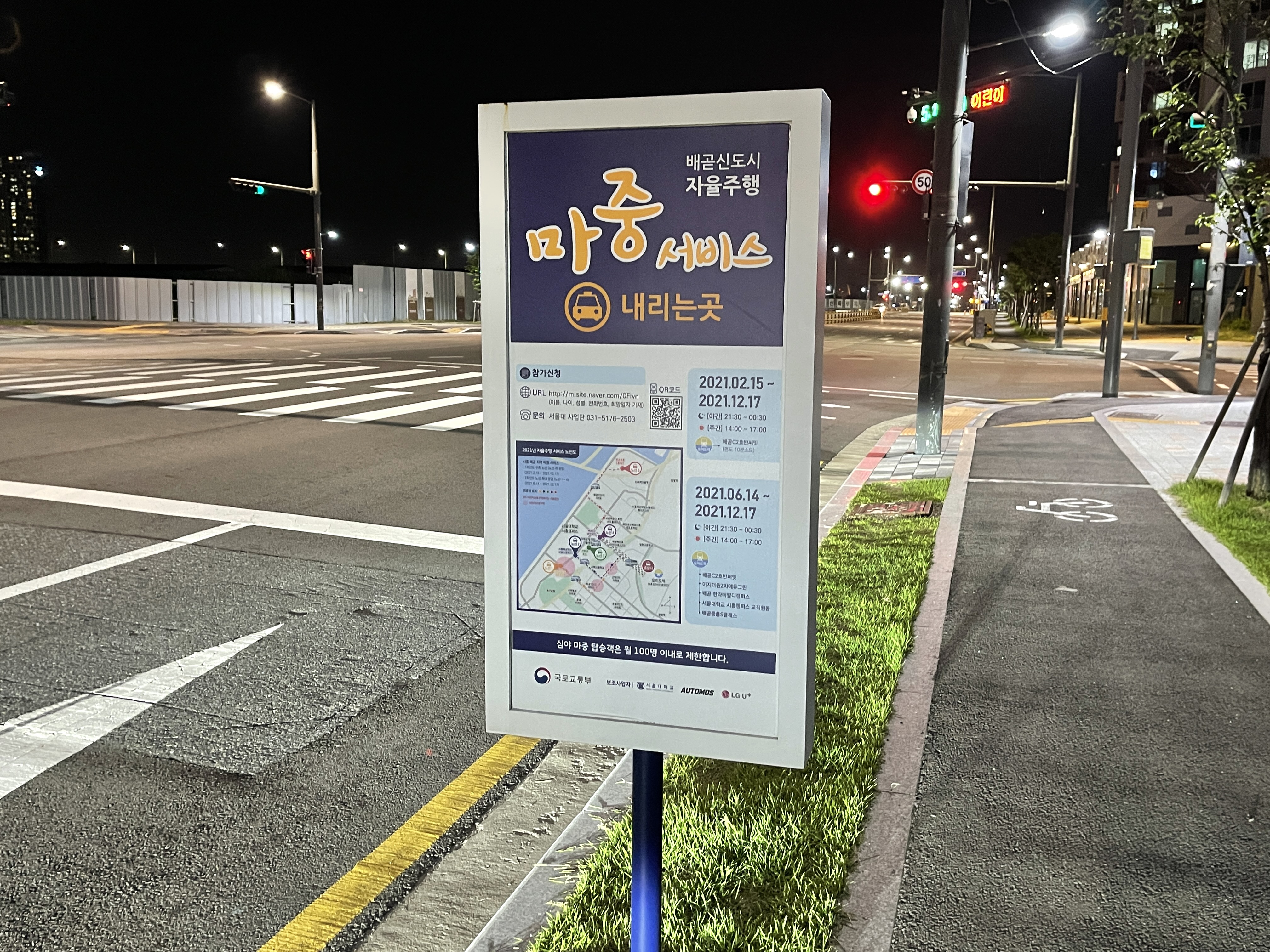서울대학교 산학협력단 컨소시엄이 진행하는 자율주행 셔틀 '마중'이 배곧신도시에 도입된 것 같네요.