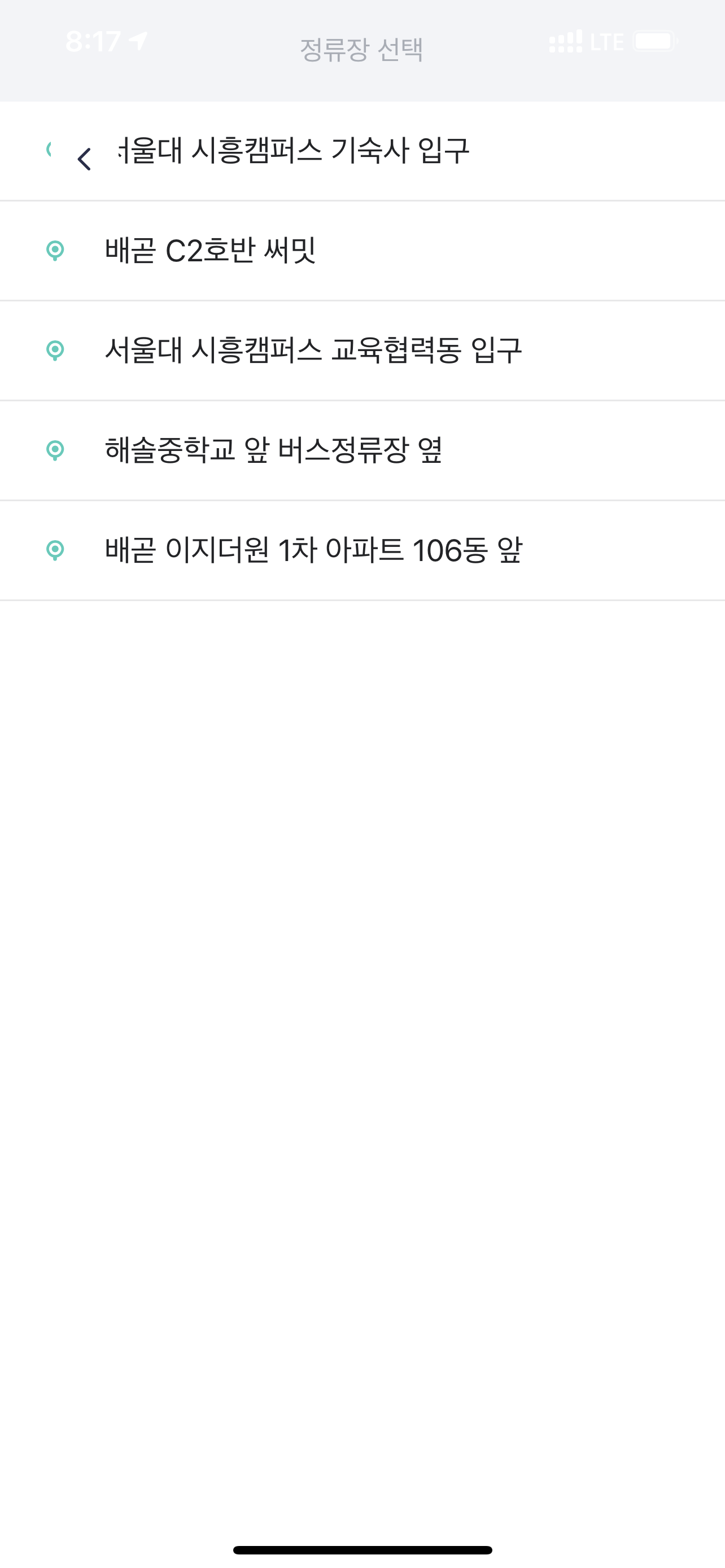 서울대 시흥캠퍼스 부지 건너편인 배곧 C2호반 써밋플레이스 정류장까지 가는 노선만 운행 중입니다.