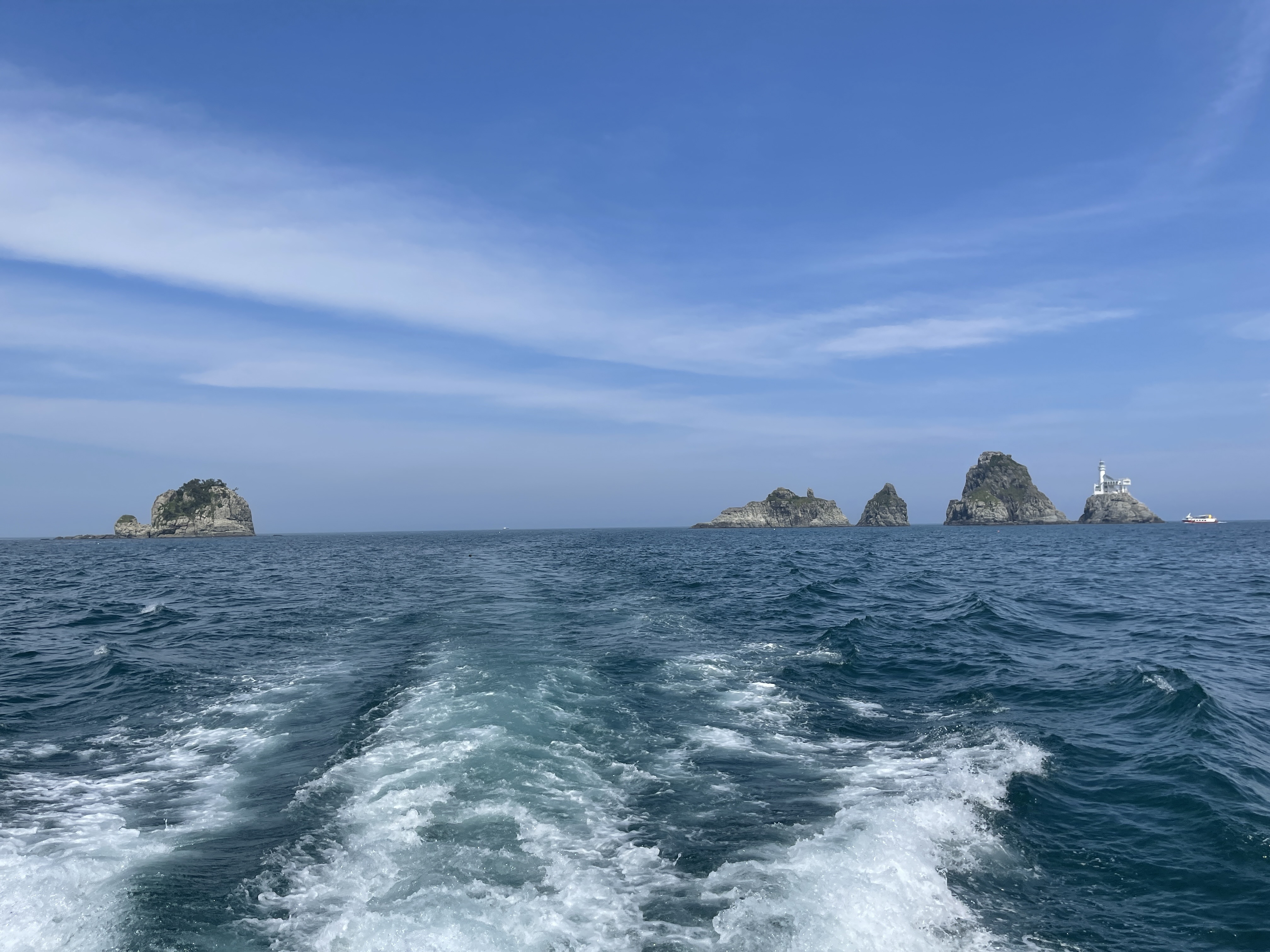 커다란 등대가 들어선 뒤로 이름이 바뀐 등대섬에 정박합니다.