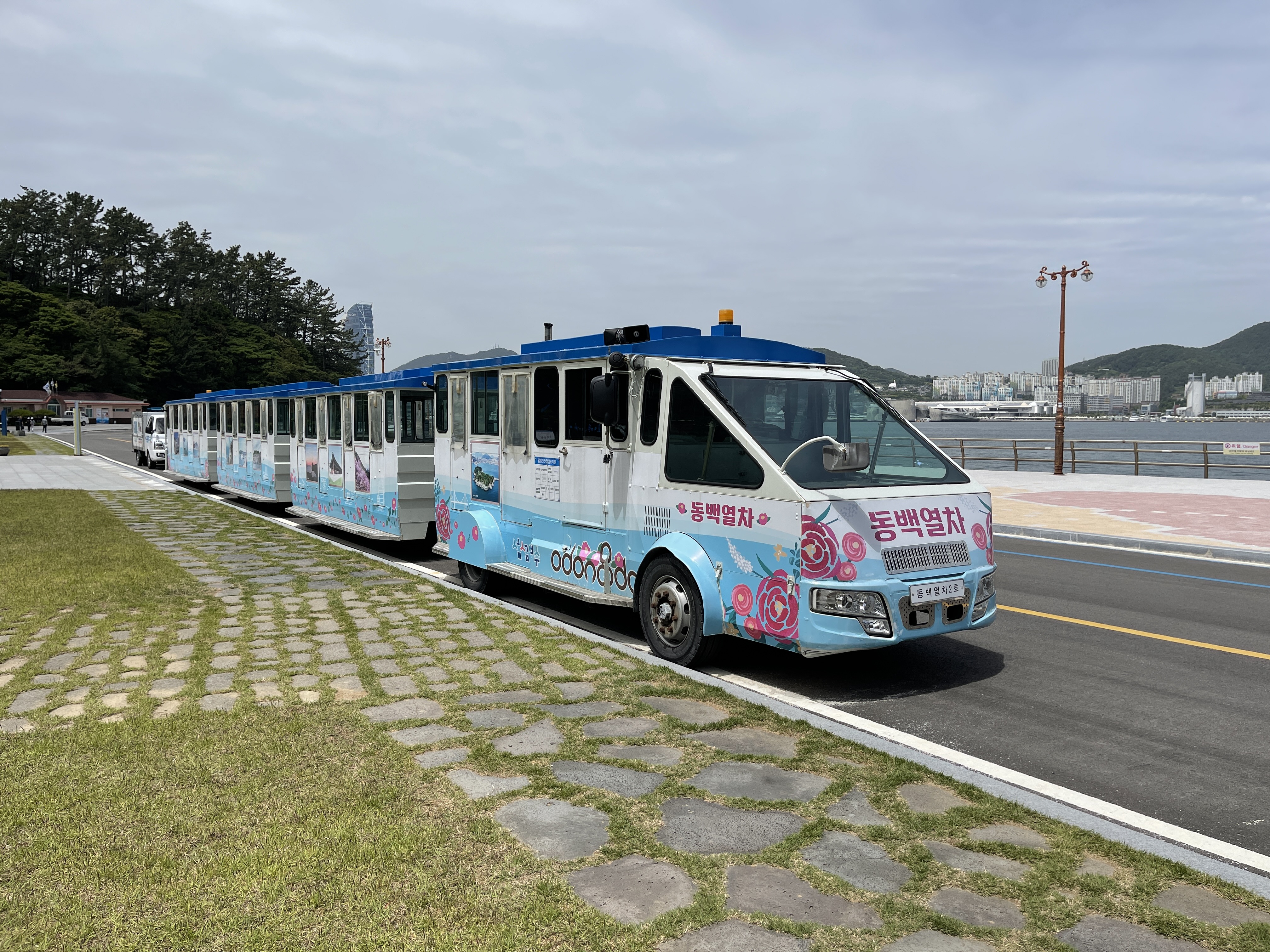 코로나로 인해 동백섬으로 들어가는 동백열차가 운행을 하지 않고 있어서