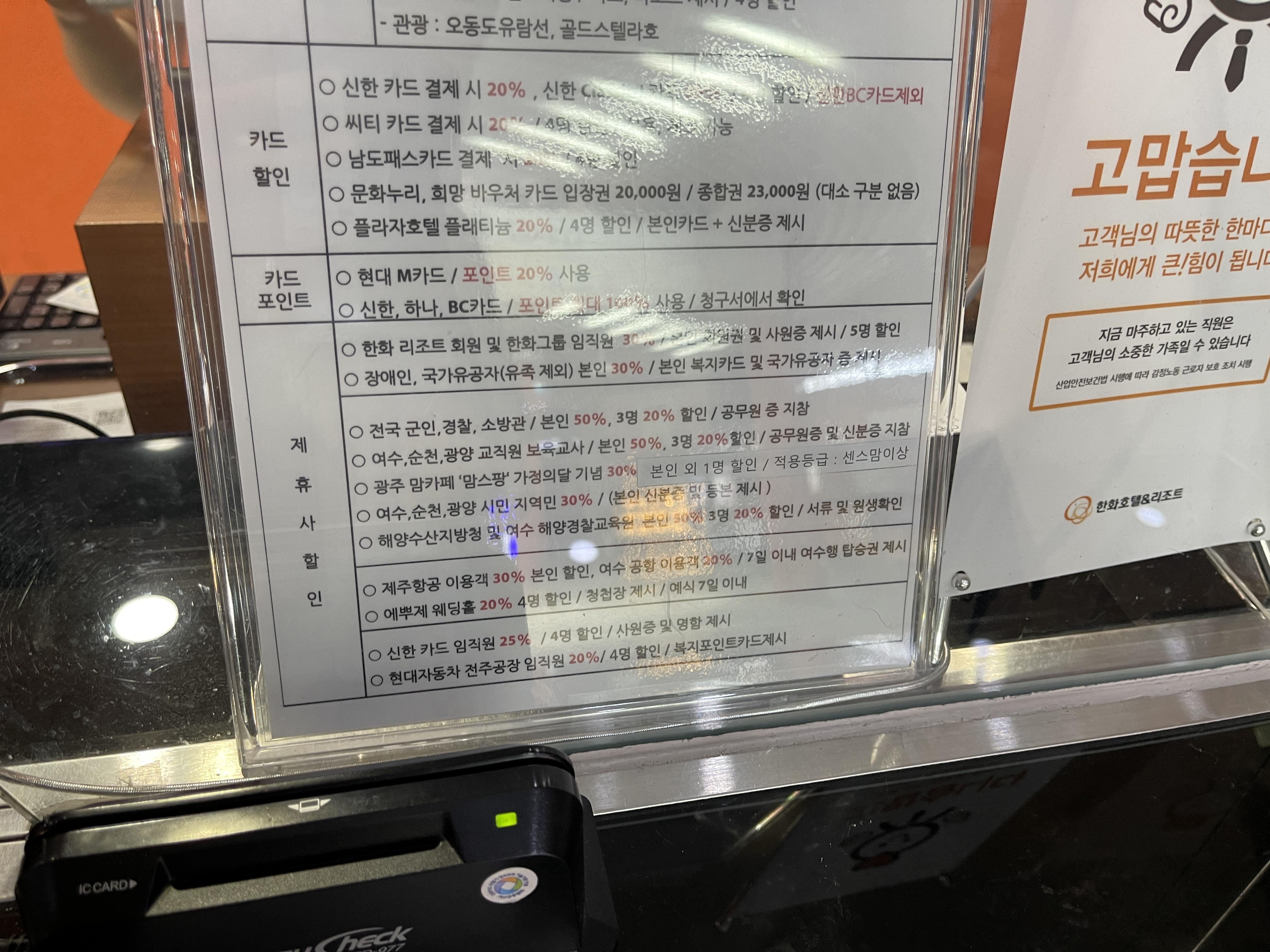 여수행 비행기를 타고 온 관광객은 2~30% 할인을 받을 수 있으니