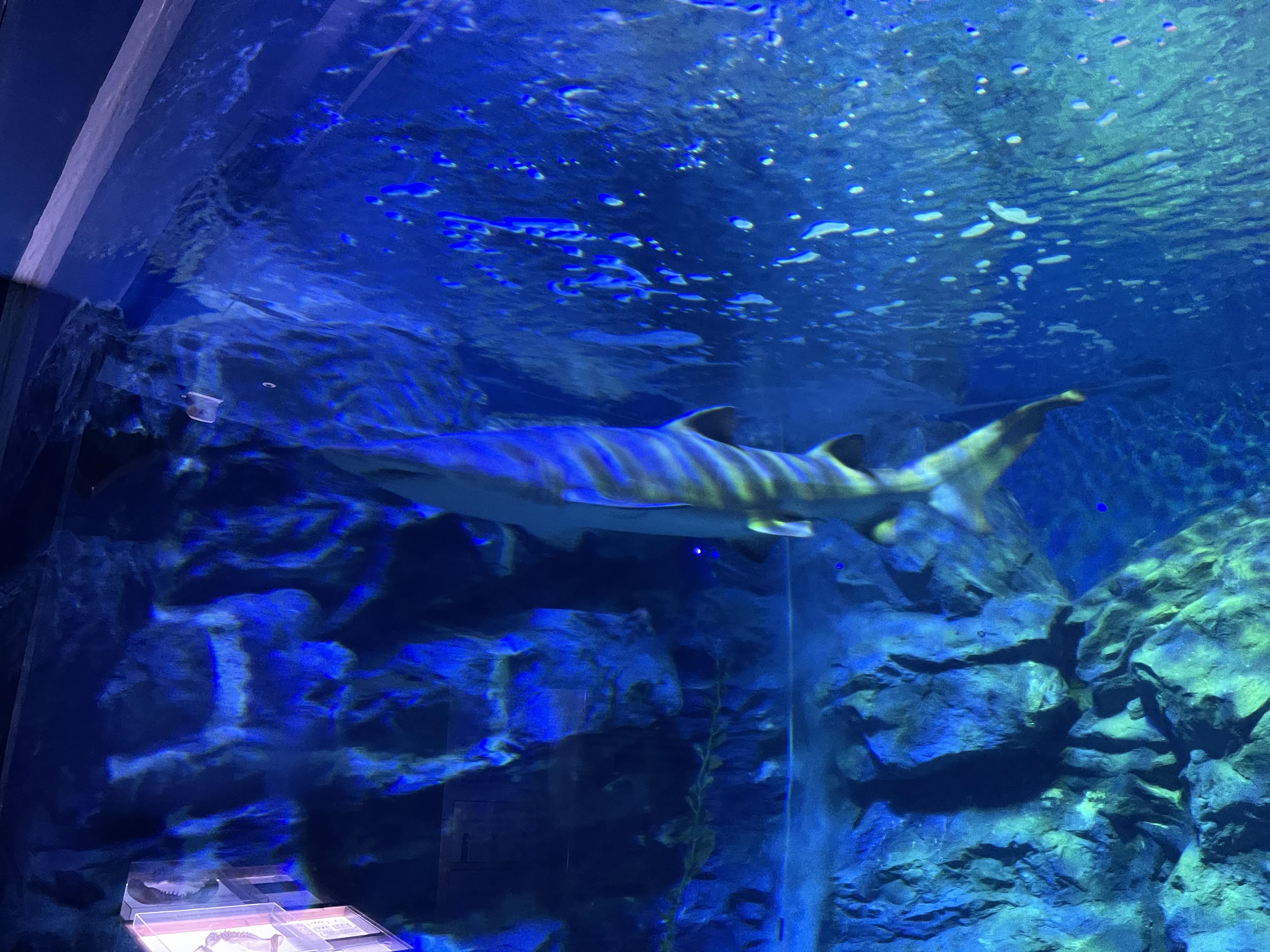샌드타이거샤크가 유유히 메인수조를 헤엄치고 있네요.