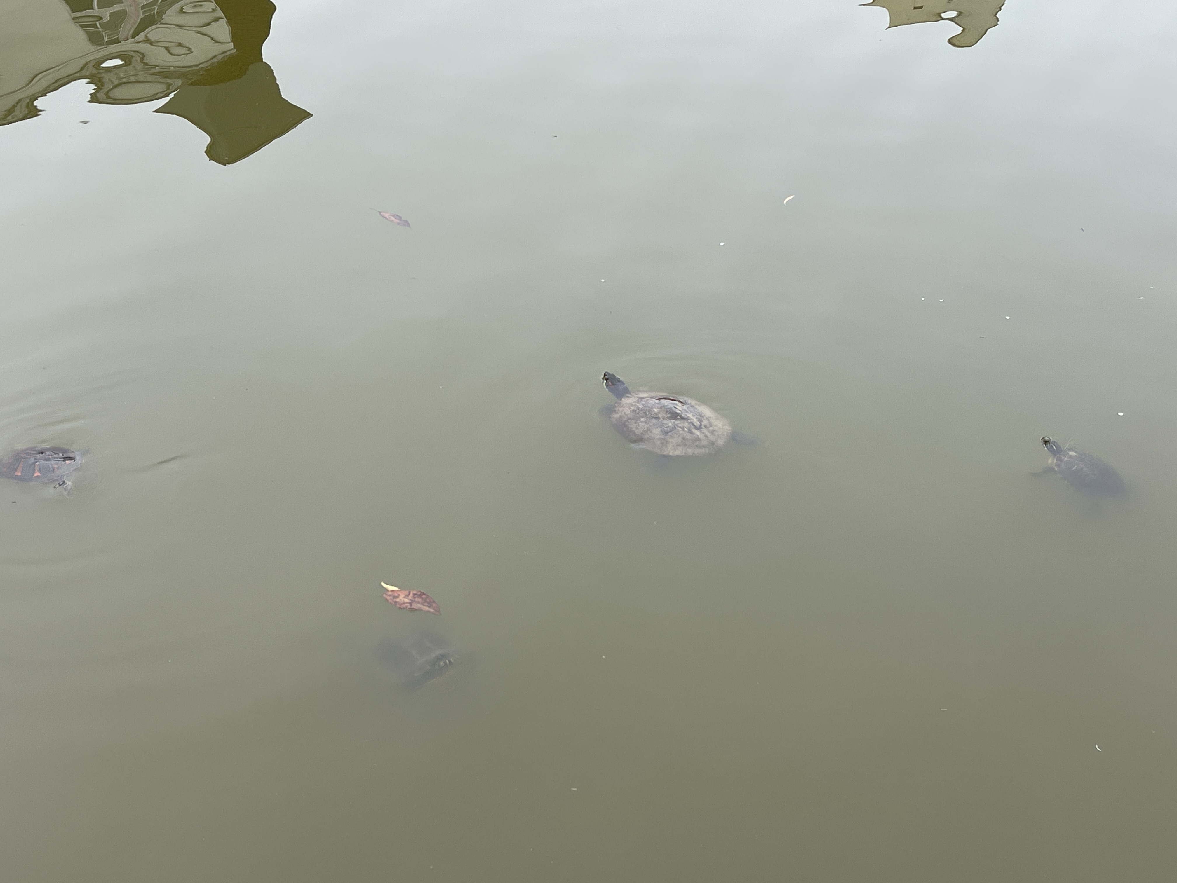 호수 안을 바라보면 괜히 거북이 모양으로 만든 게 아니라는 듯이 거북이도 살고 있는데요.