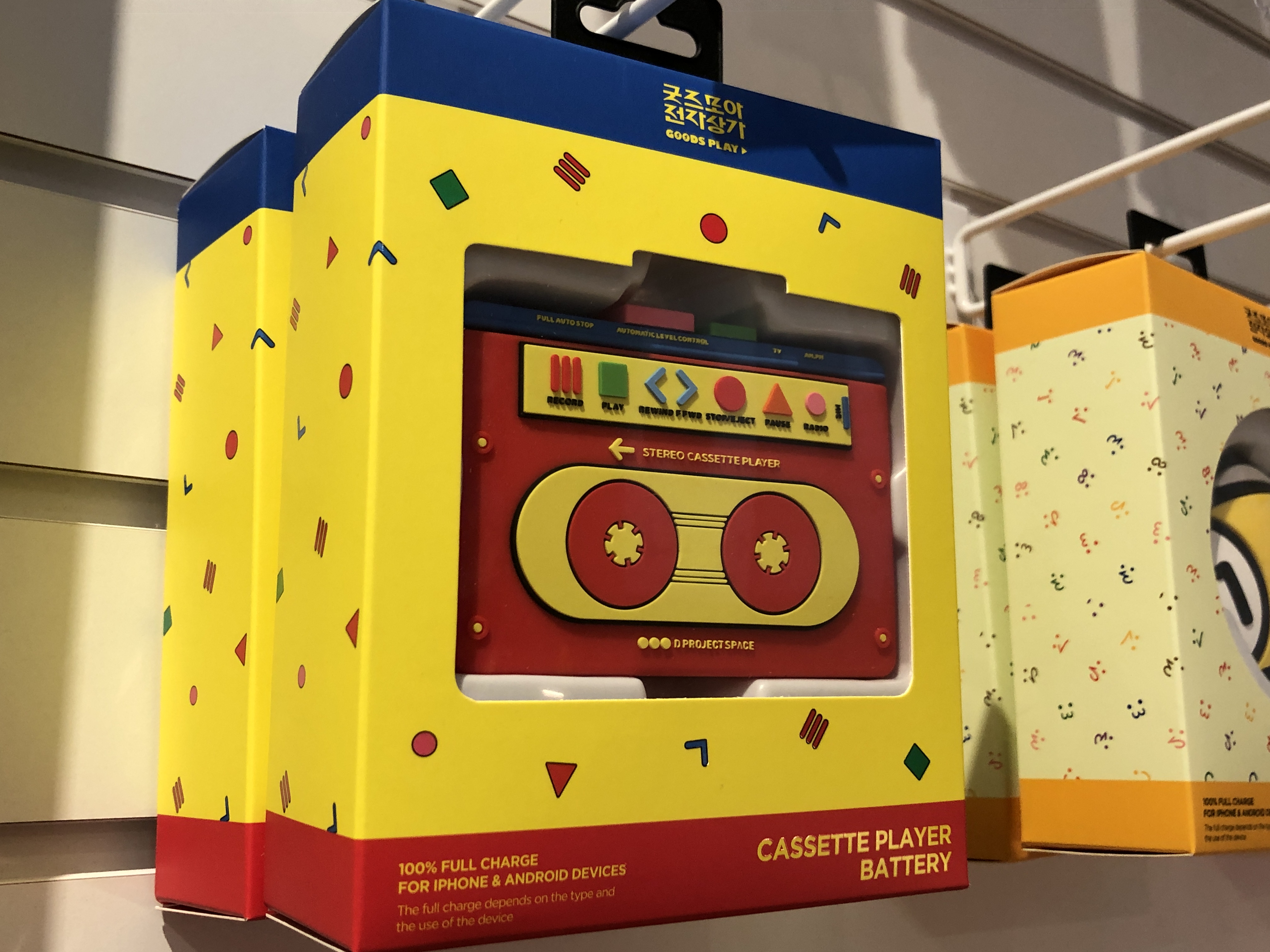 레트로 감성을 아주 잘 살린 카세트테이프 플레이어 모양 보조배터리인데