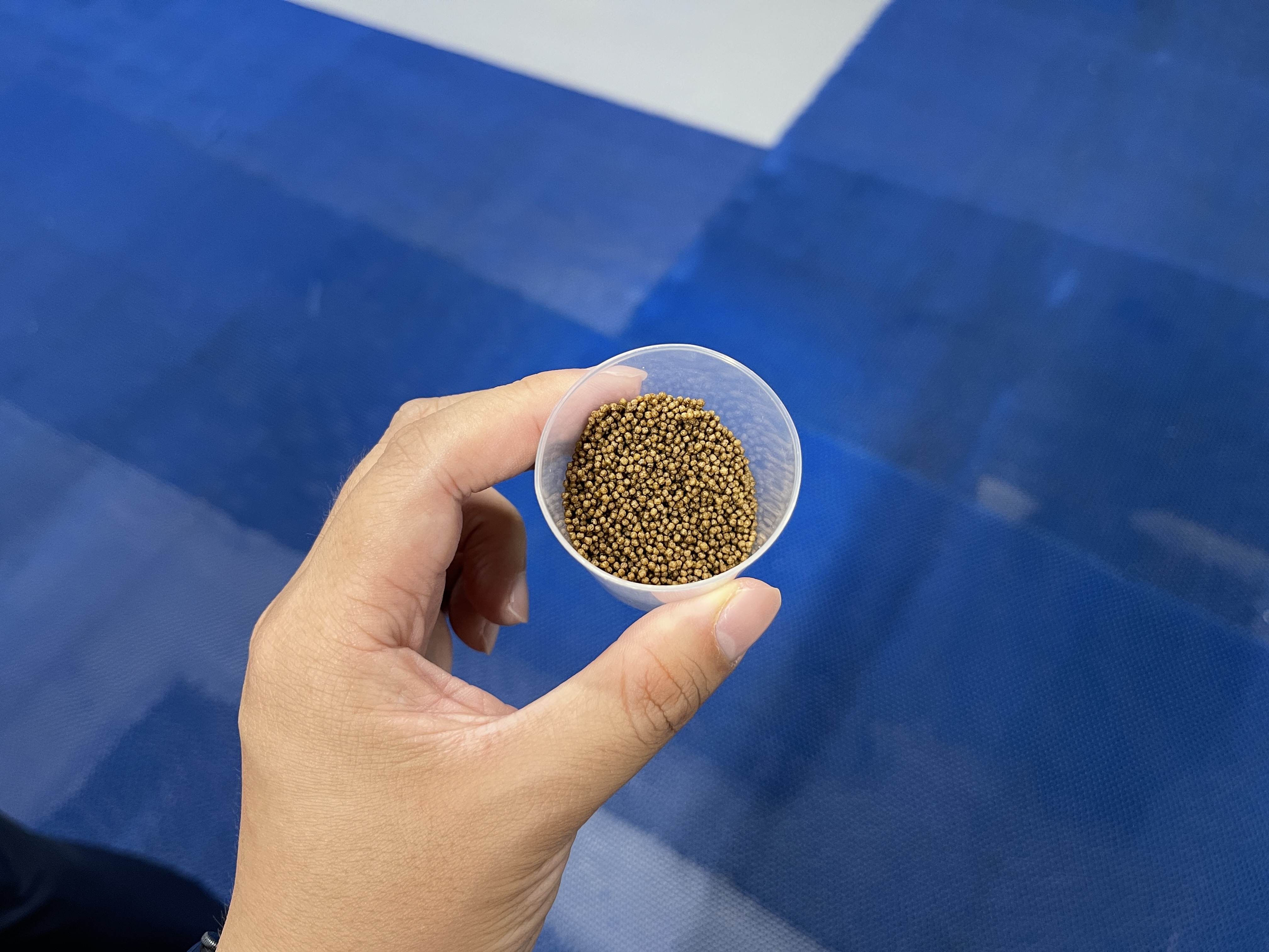 크릴을 물로 던지면 물고기들이 바로 반응해 먹이가 떨어지는 곳으로 달려가는데