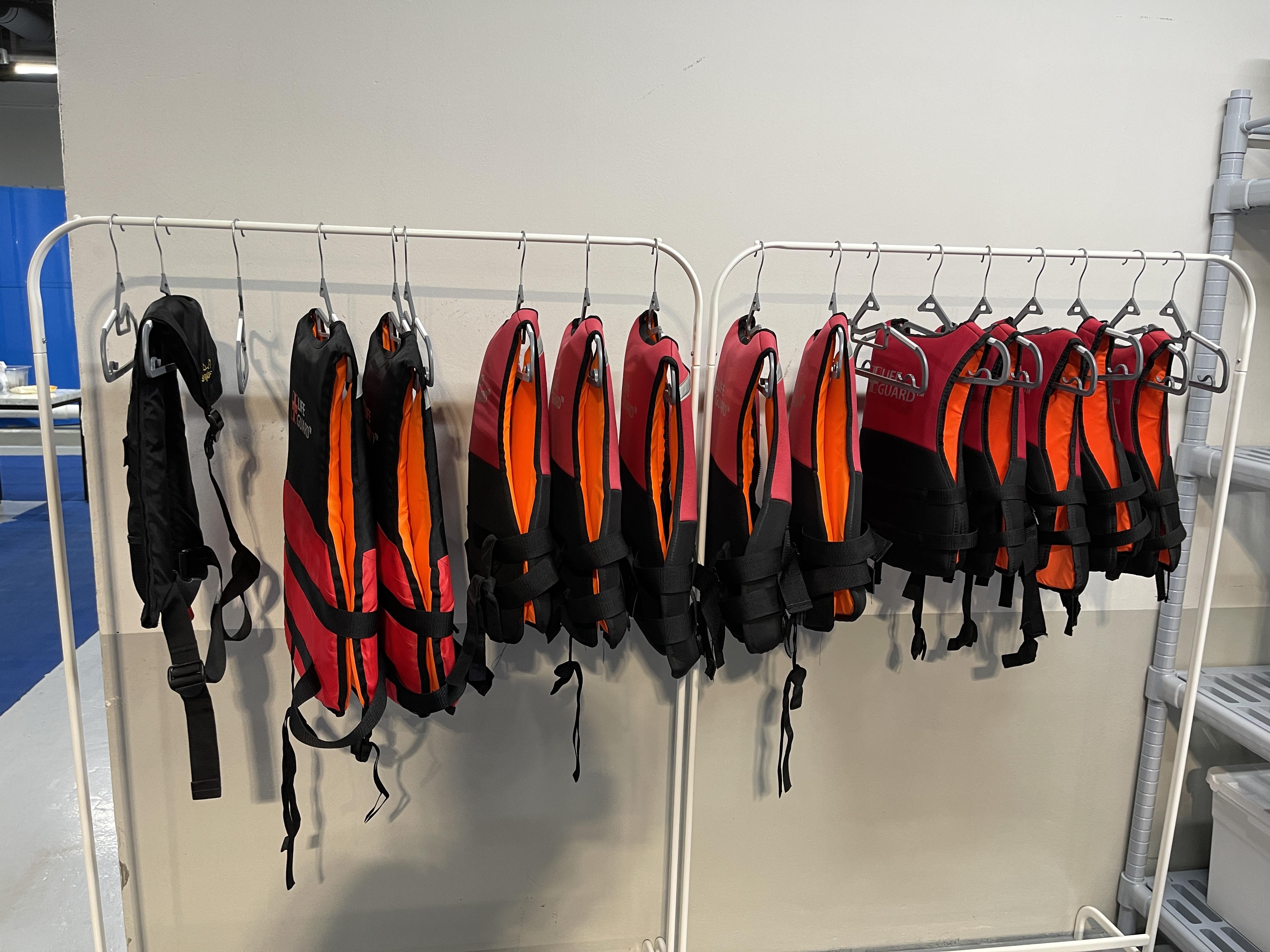 구명조끼를 입고,
