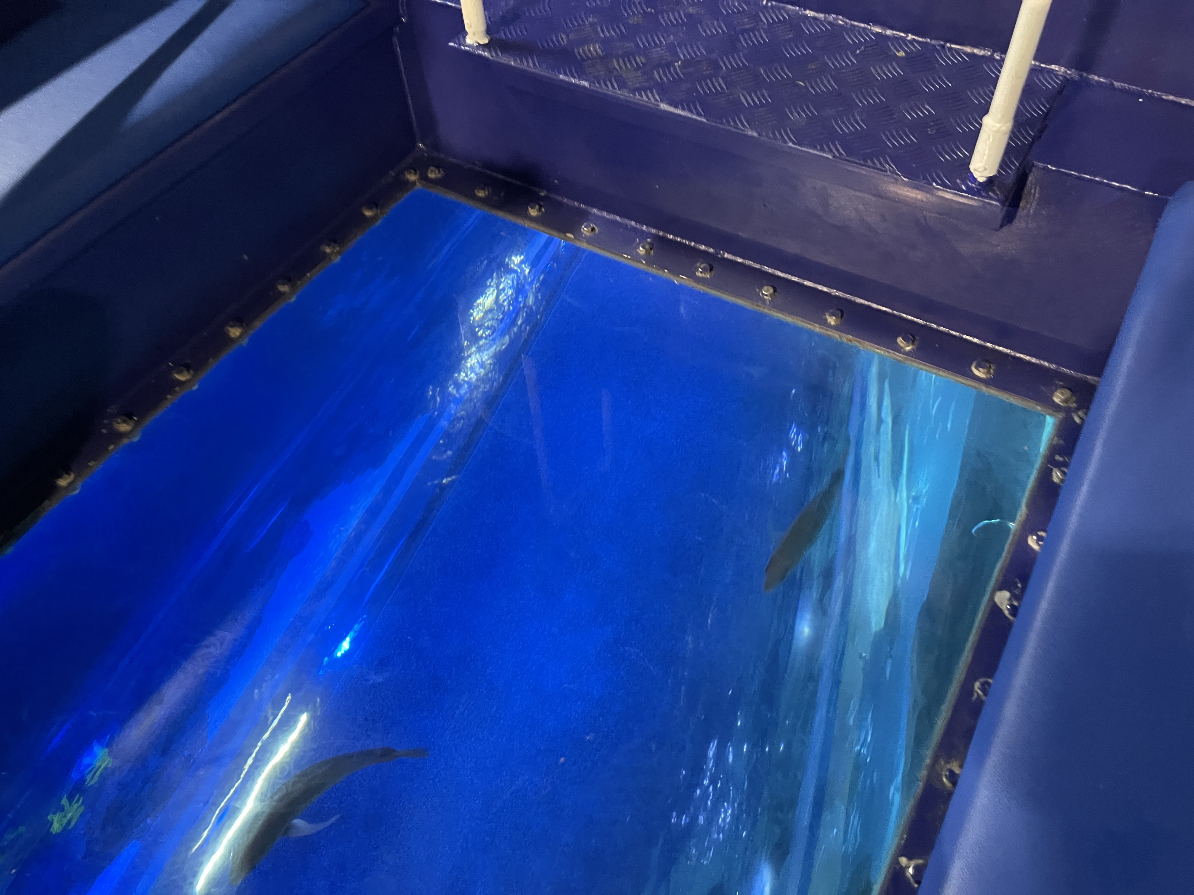 바닥이 유리로 되어 아래가 훤히 보이는 투명보트에 탑니다.