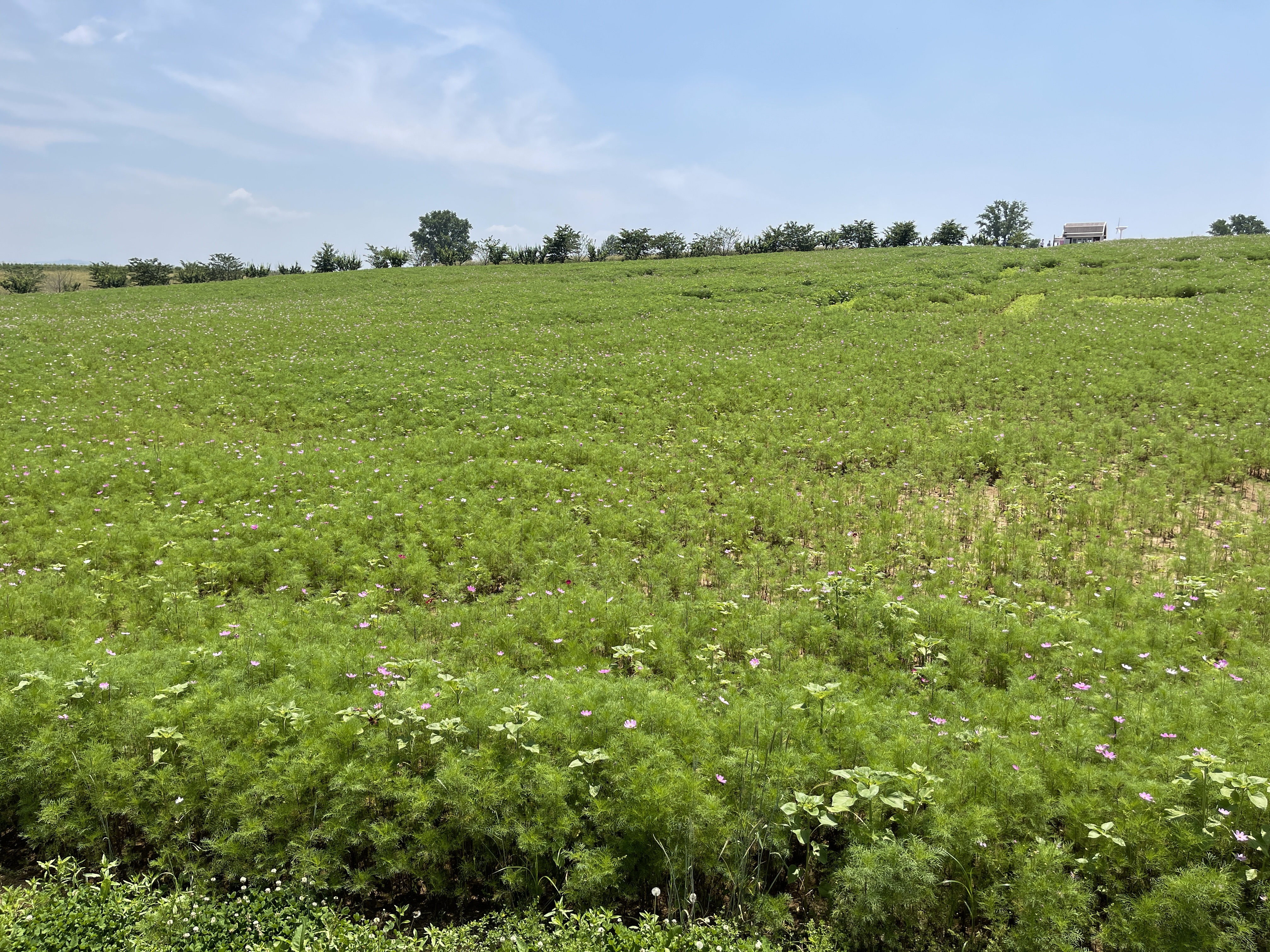 바람쉼터에서 푸른 풀 사이사이 자란 꽃을 바라보다