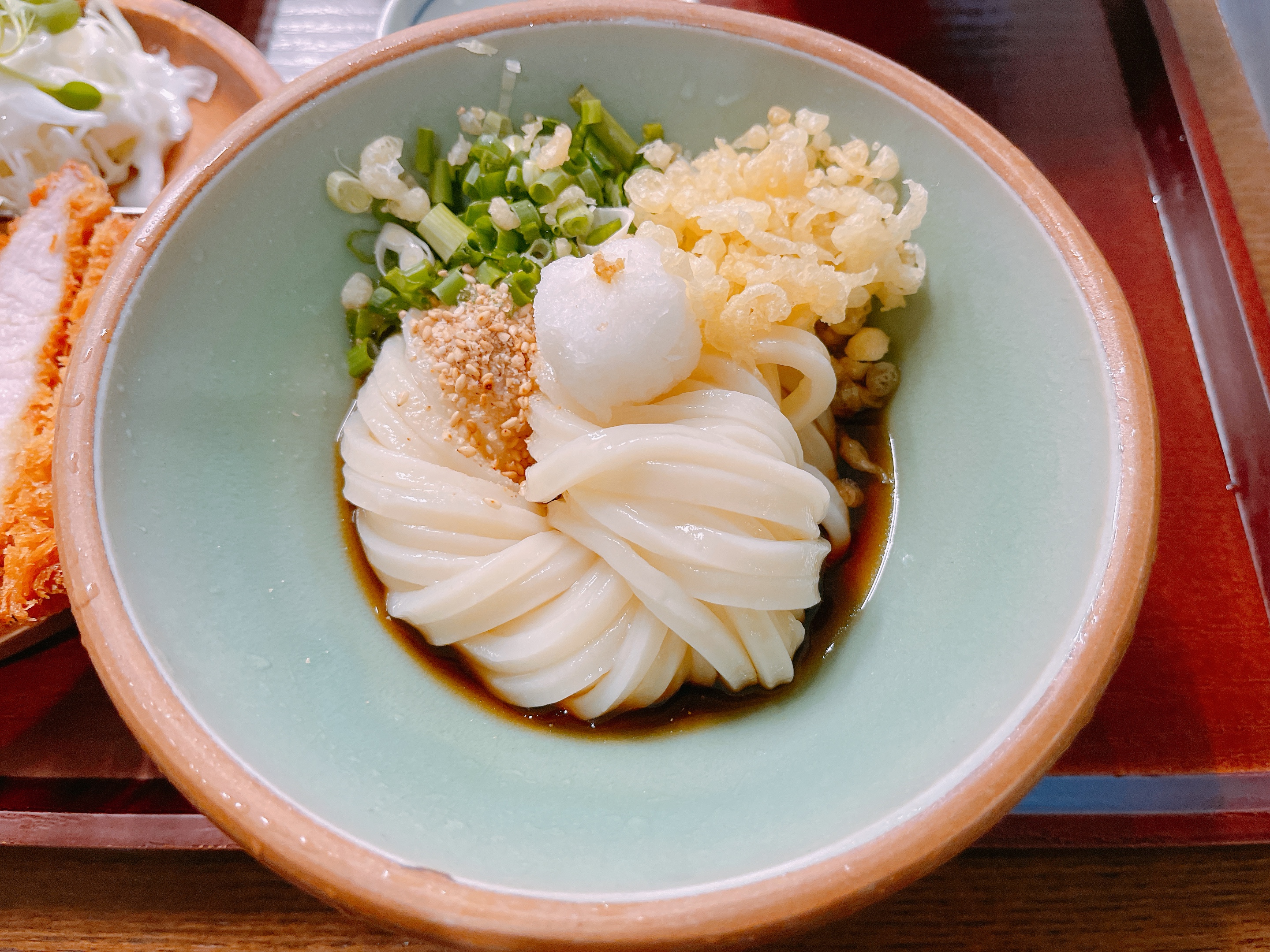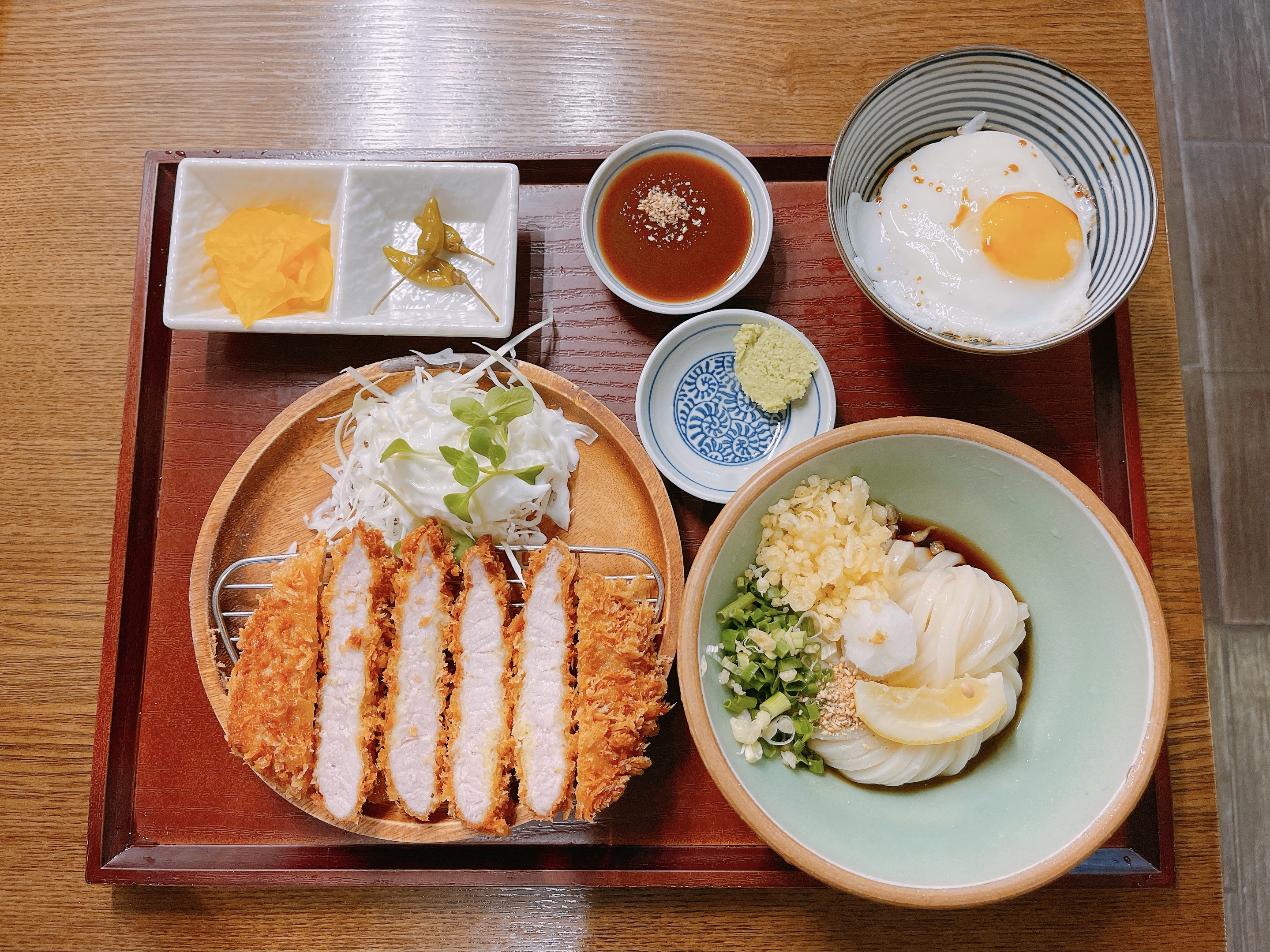 조금 기다려서 붓카케 우동이 포함된 돈카츠 정식을 받았습니다.