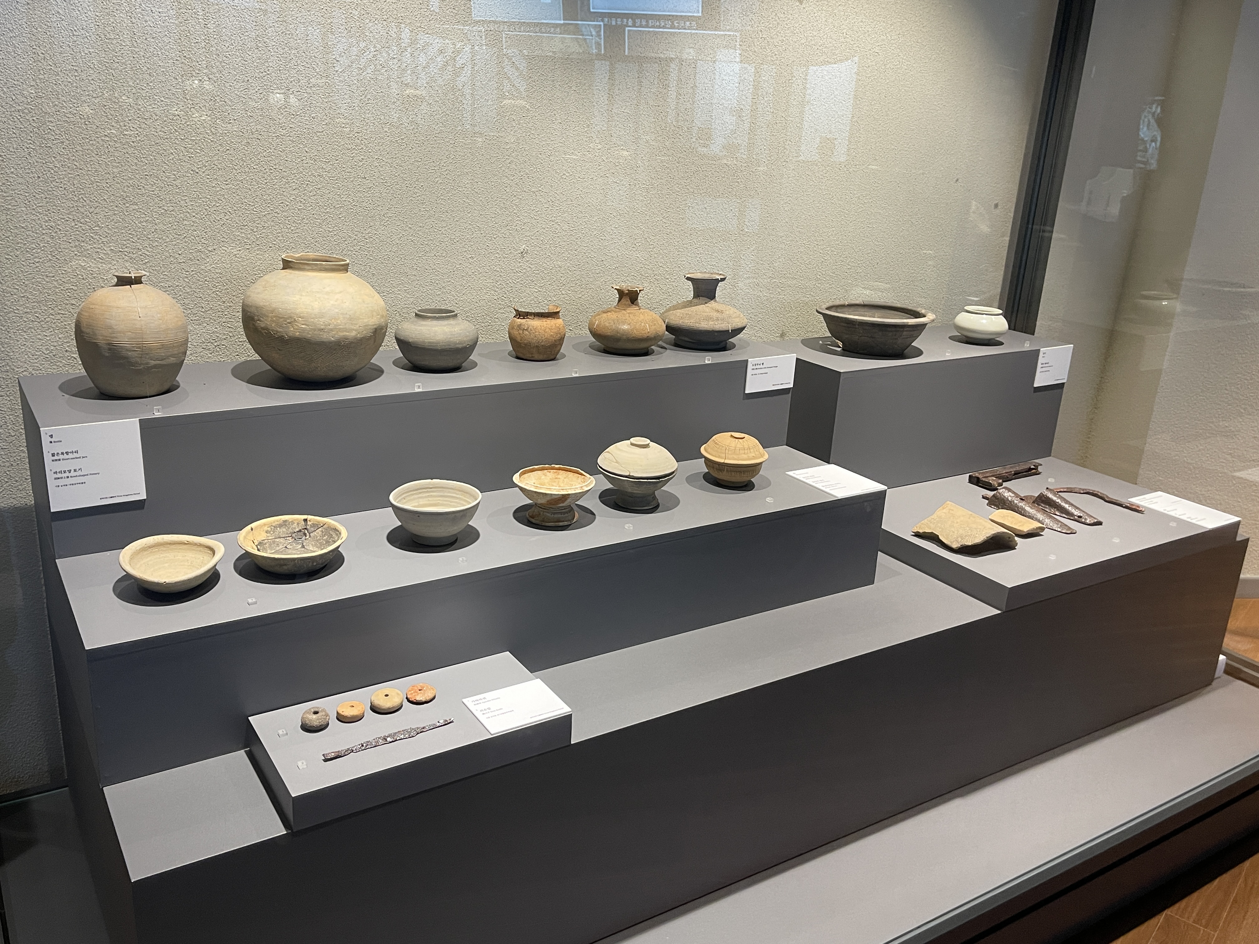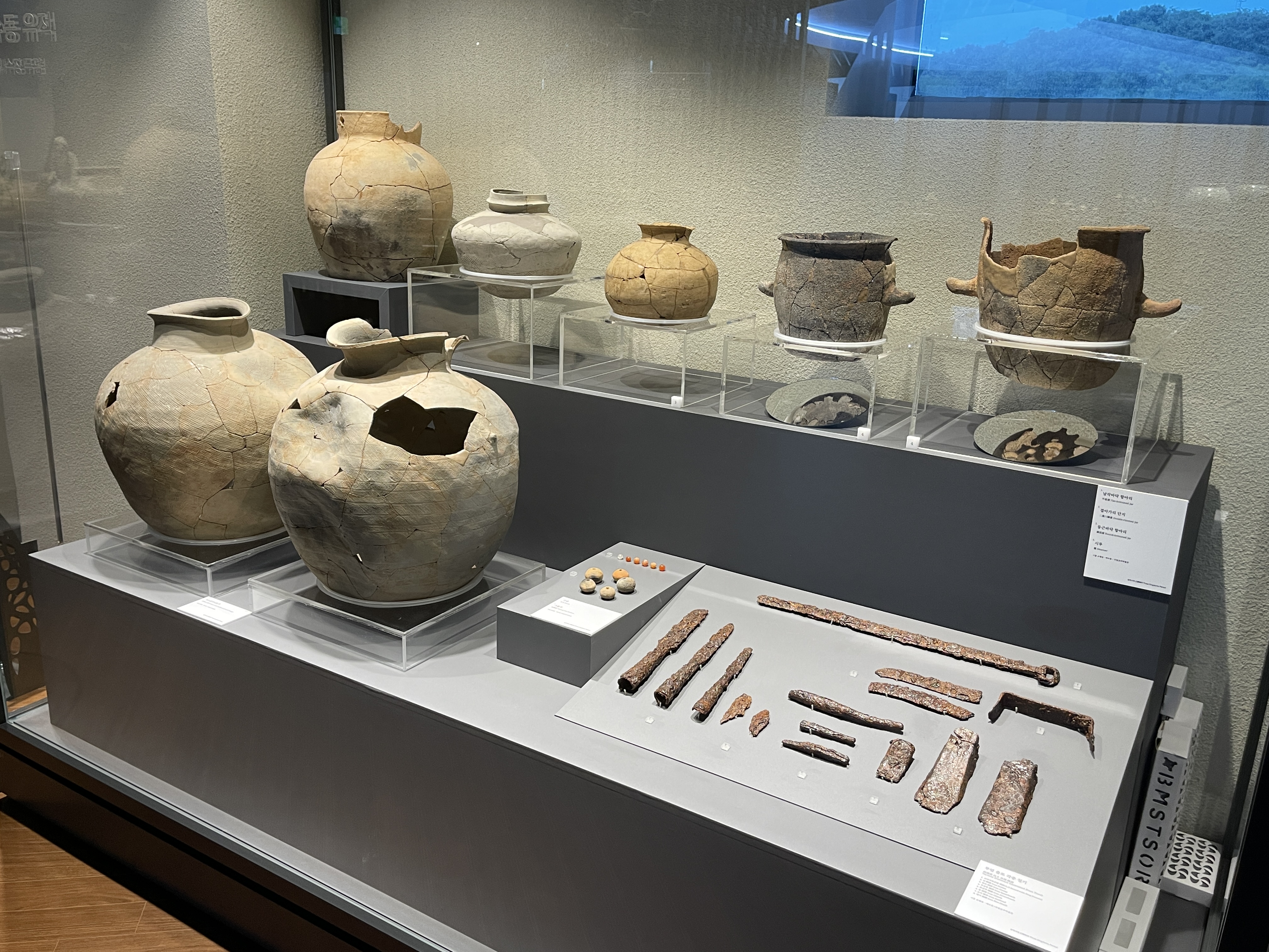 다양한 시기의 토기와 철기들이 보이네요.