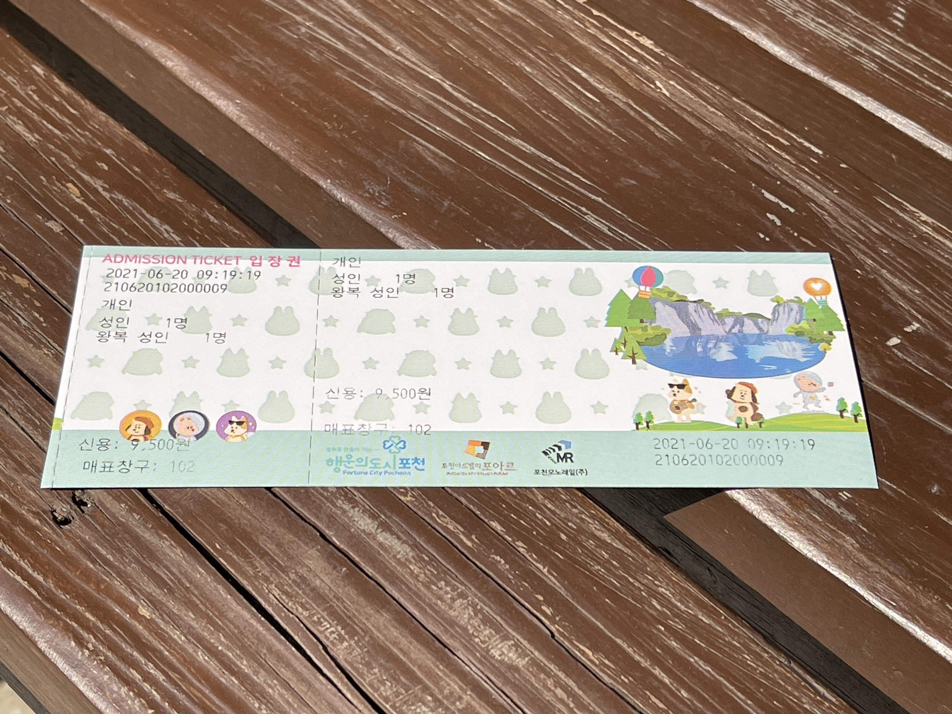 그러니 포천아트밸리 입장료와 모노레일 요금을 합쳐서 9,500원을 냈습니다.