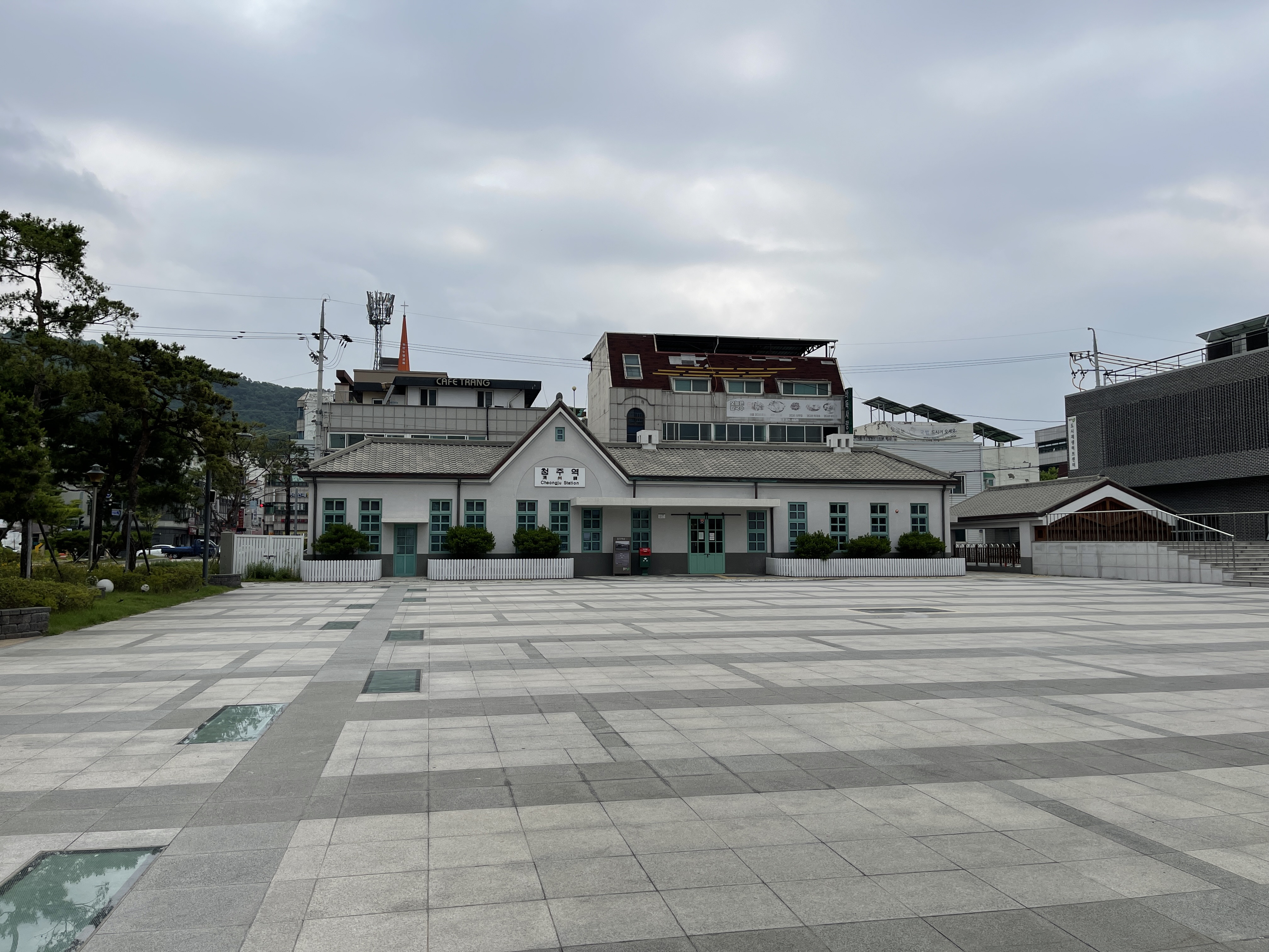 옛 청주역 모양으로 건물을 새로 지어 공원으로 만들었습니다.