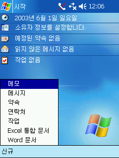 화면 아래에 있는 것은 PDA에서 쓰는 주요 기능을 모아둔 '신규' 버튼인데