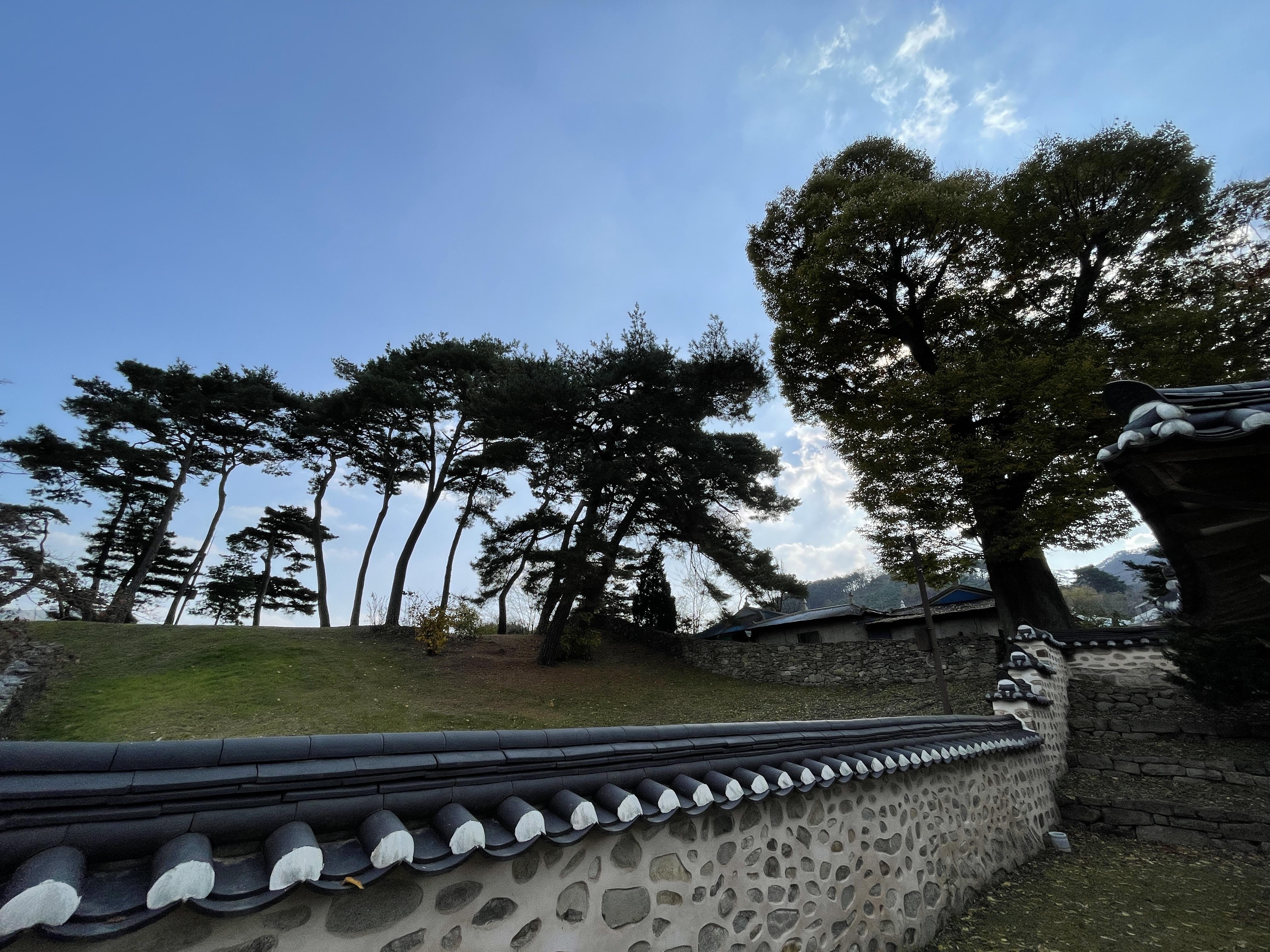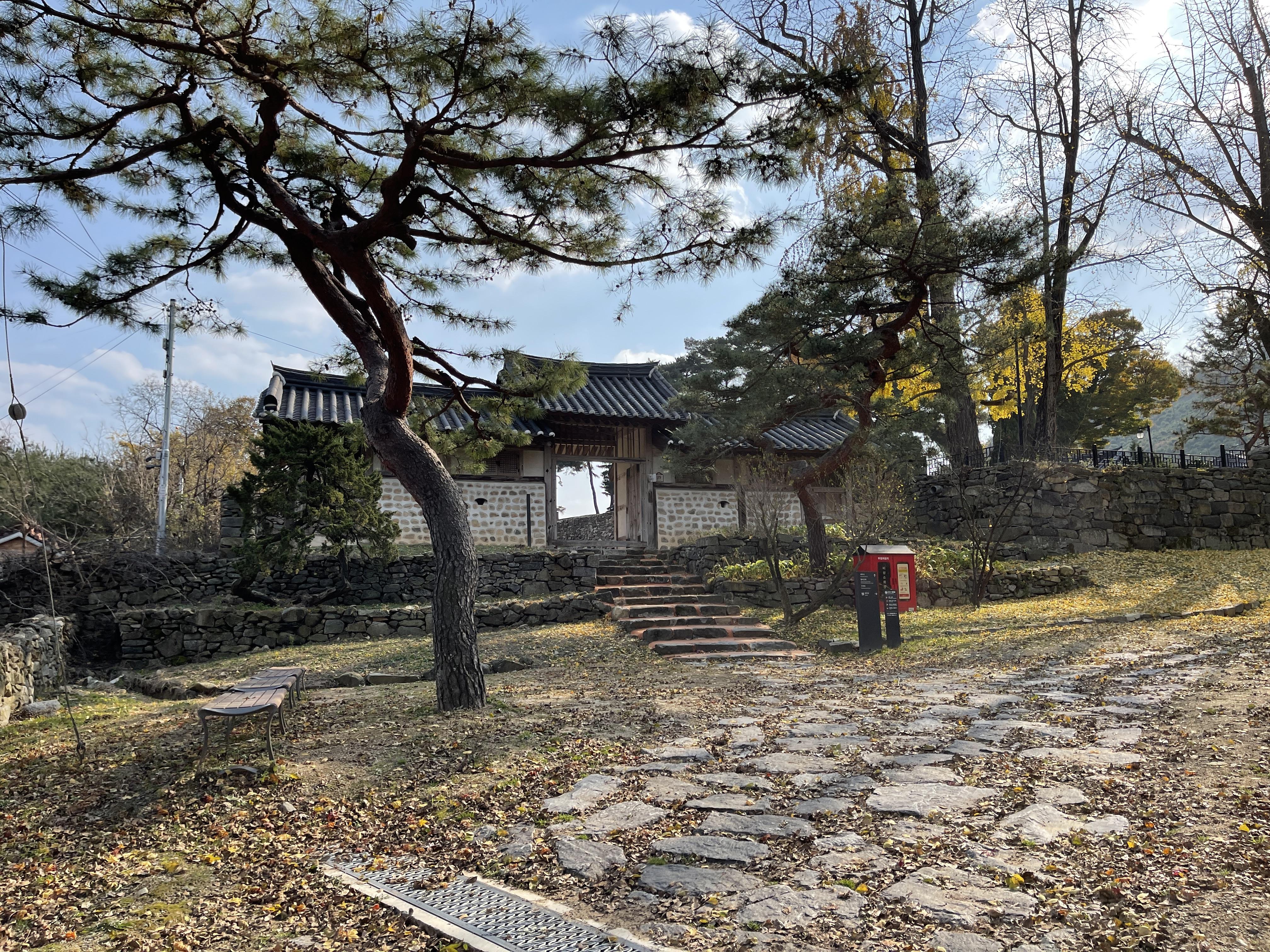 노란 은행잎이 떨어진 모습을 보니 고택 뒤로 자란 소나무가 보기엔 더 좋네요.
