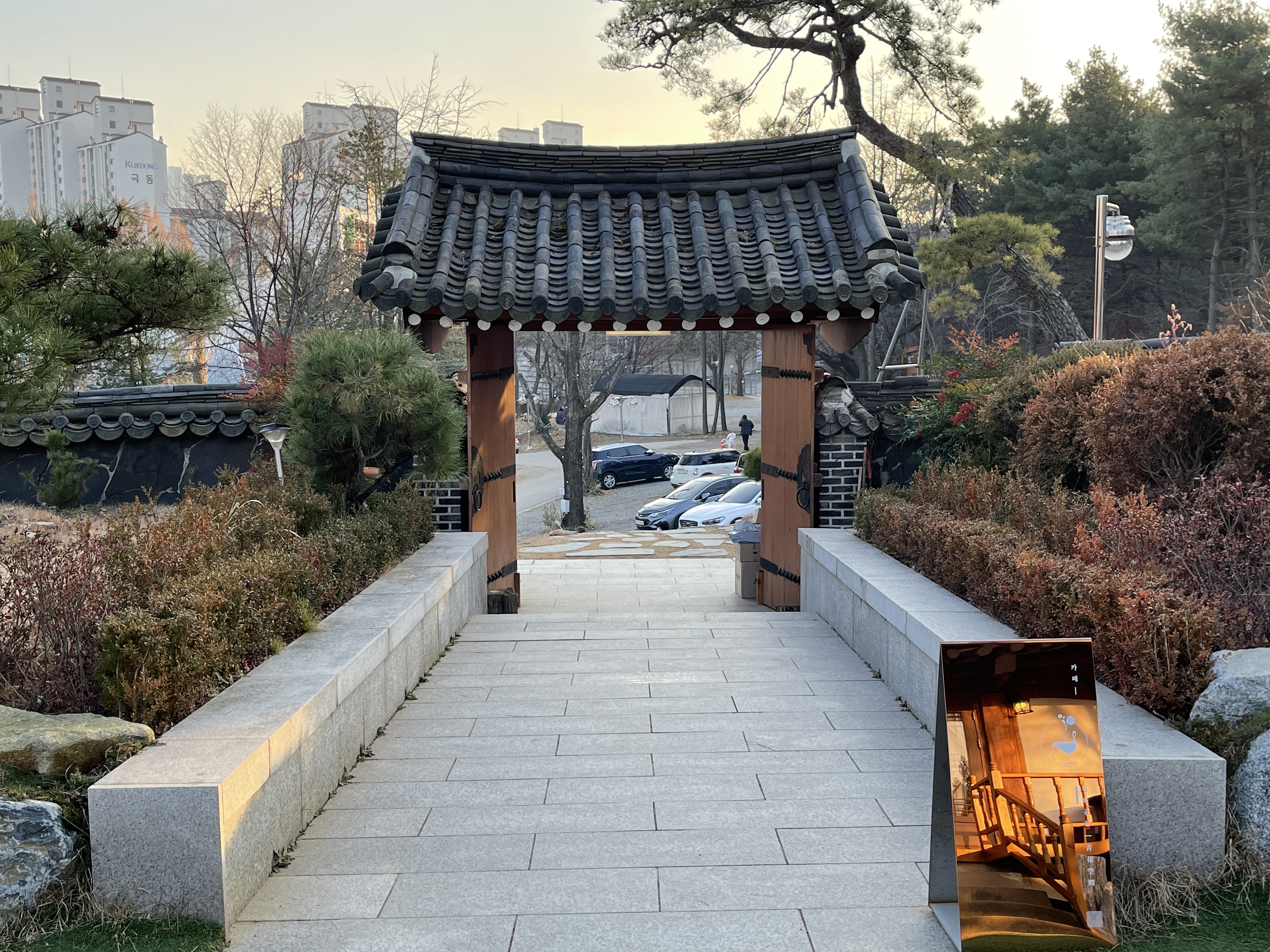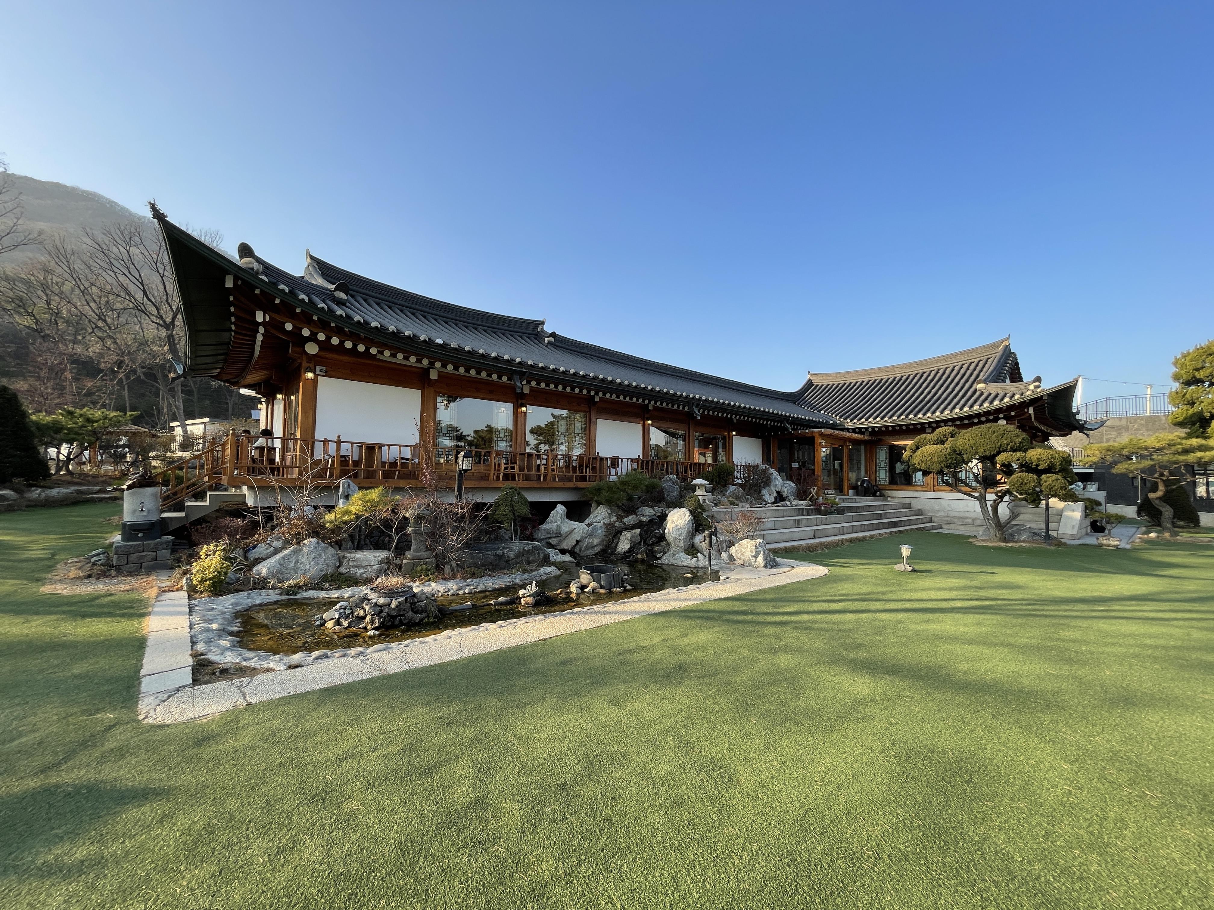 널찍한 공간을 둘러싼 담벼락 안에 커다란 한옥 스타일 건물이 하나 있고