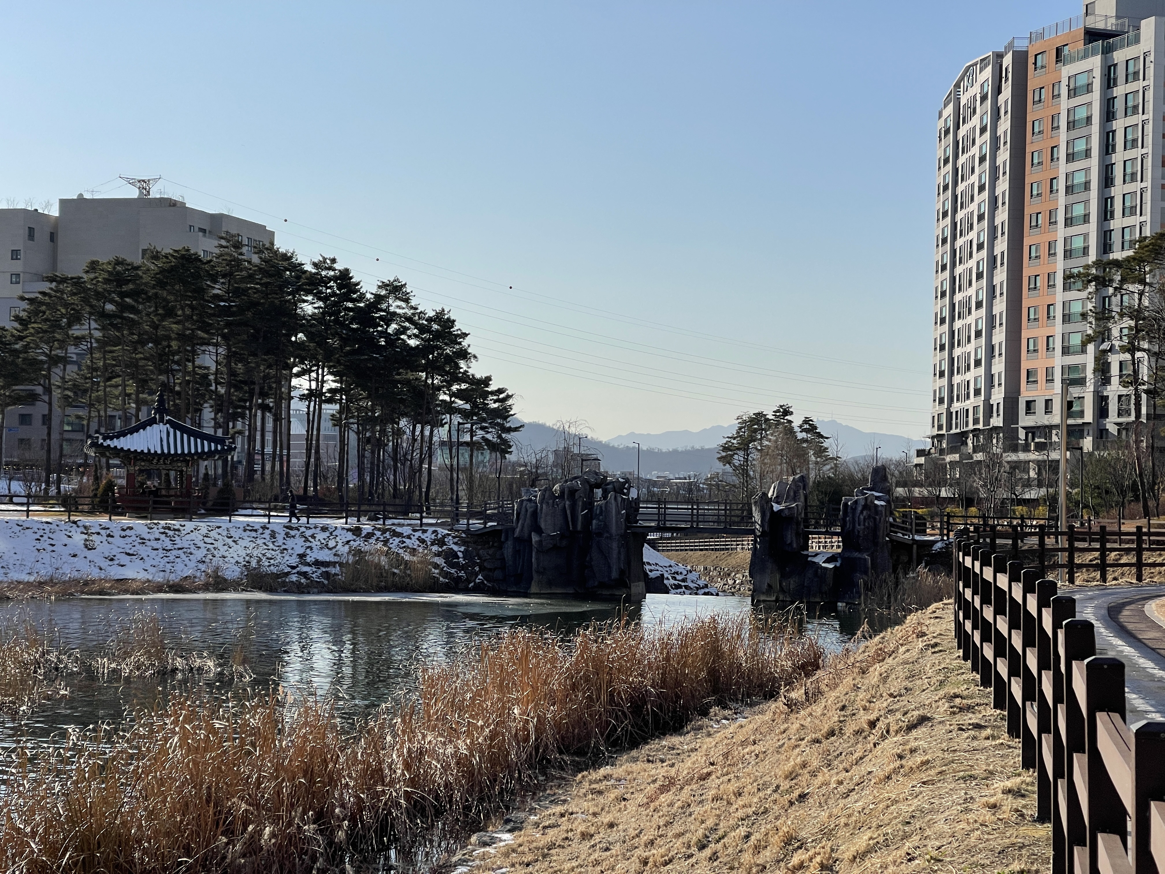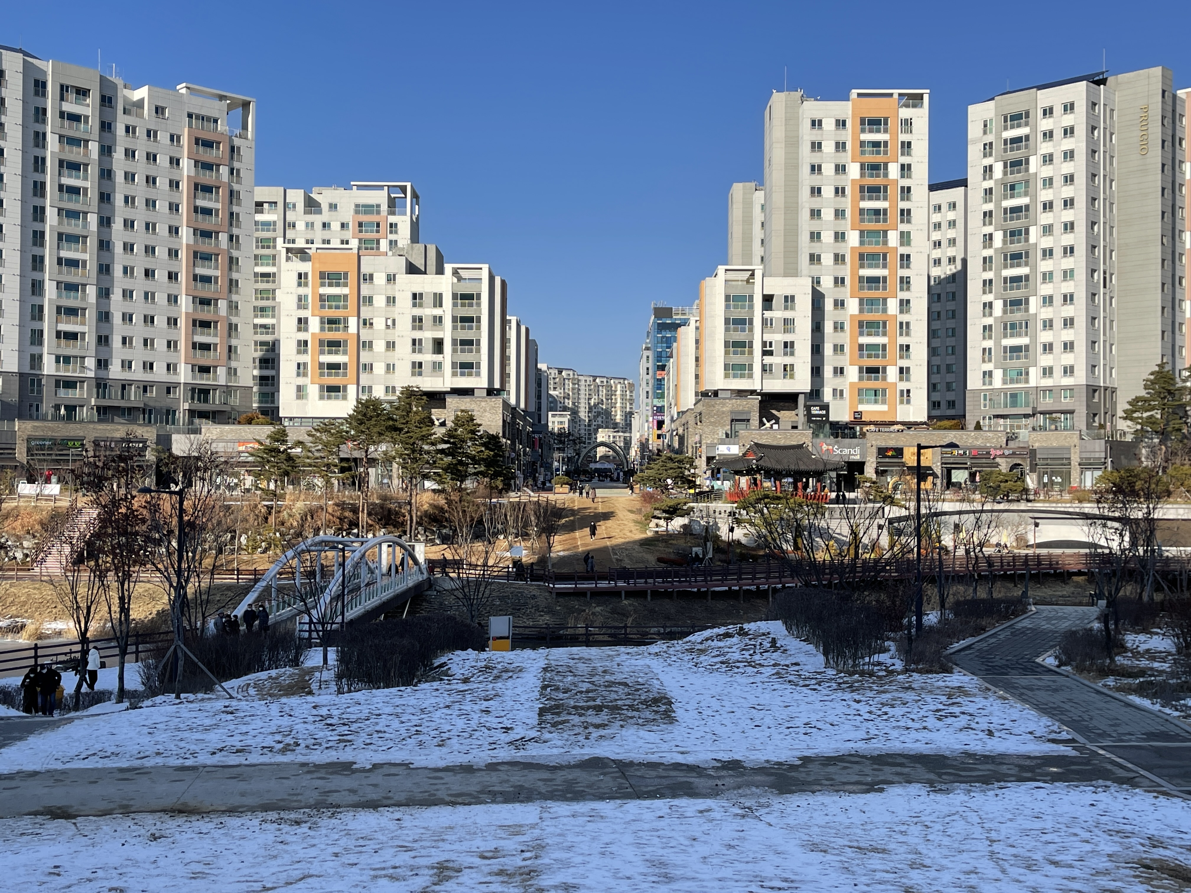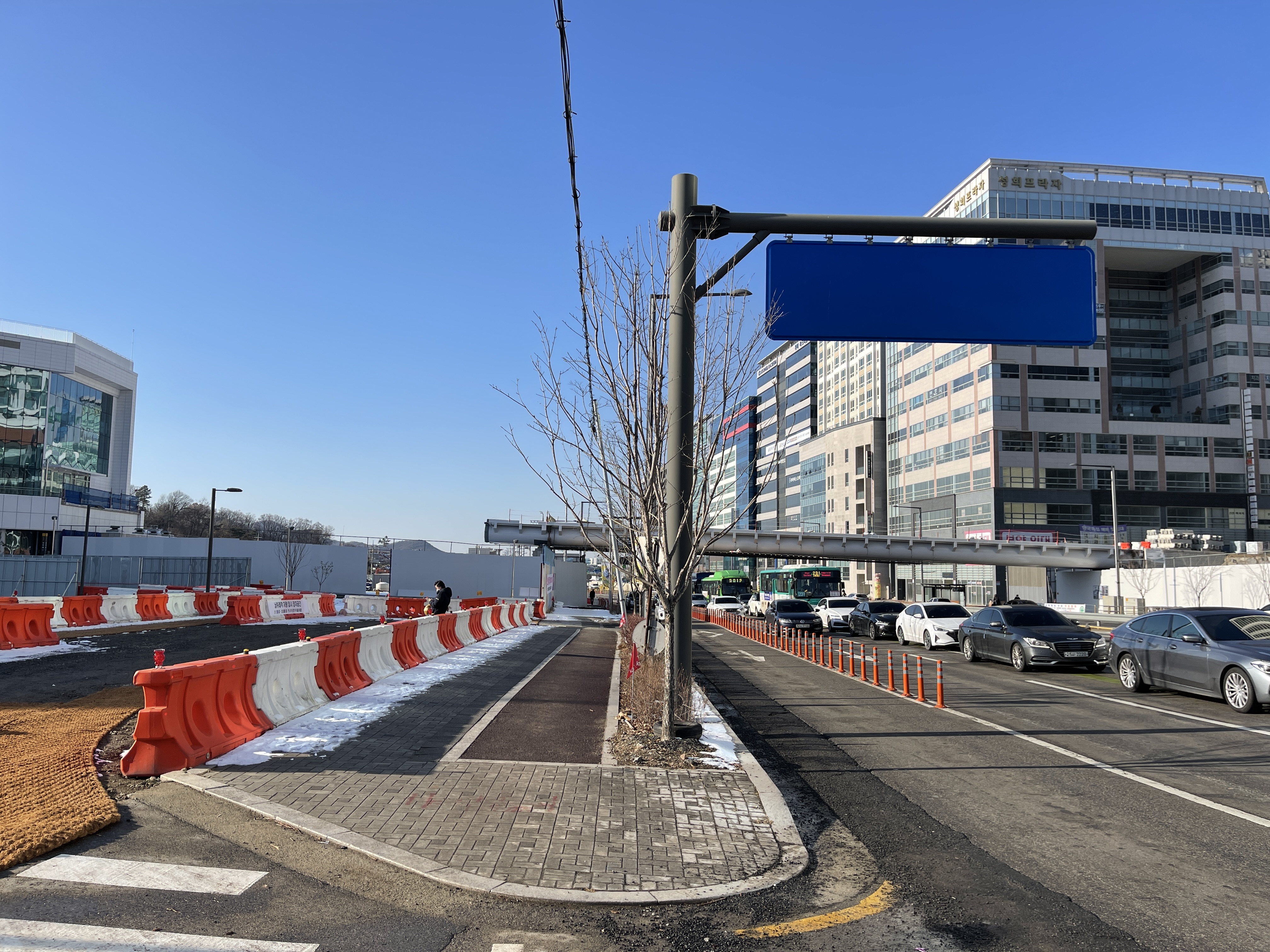 아직 공사 중인 육교가 잇는 널찍한 길을 따라 북쪽으로 걸어갑니다.