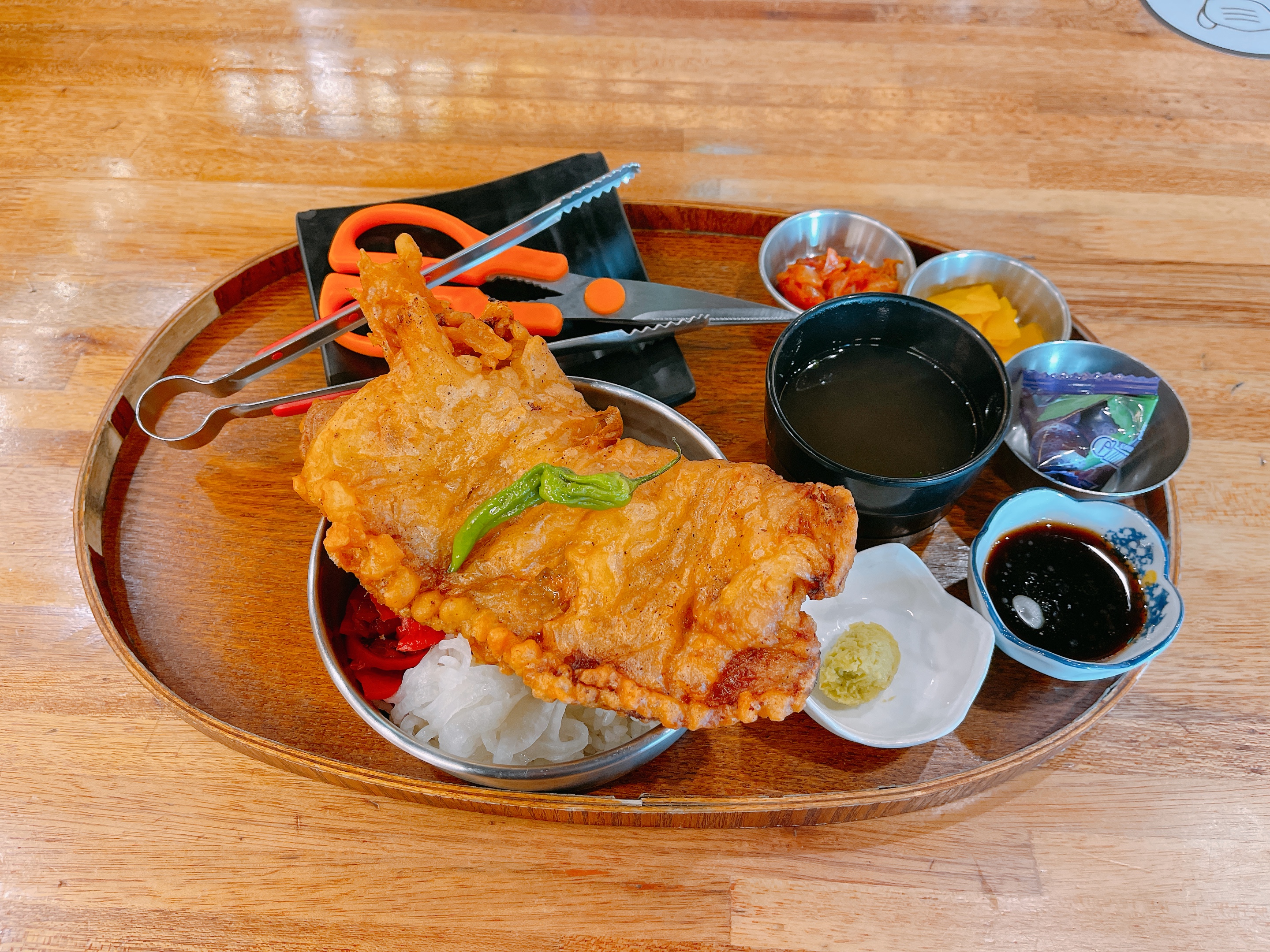 안내문에 적힌 대로 큼지막한 튀김을 반으로 잘라