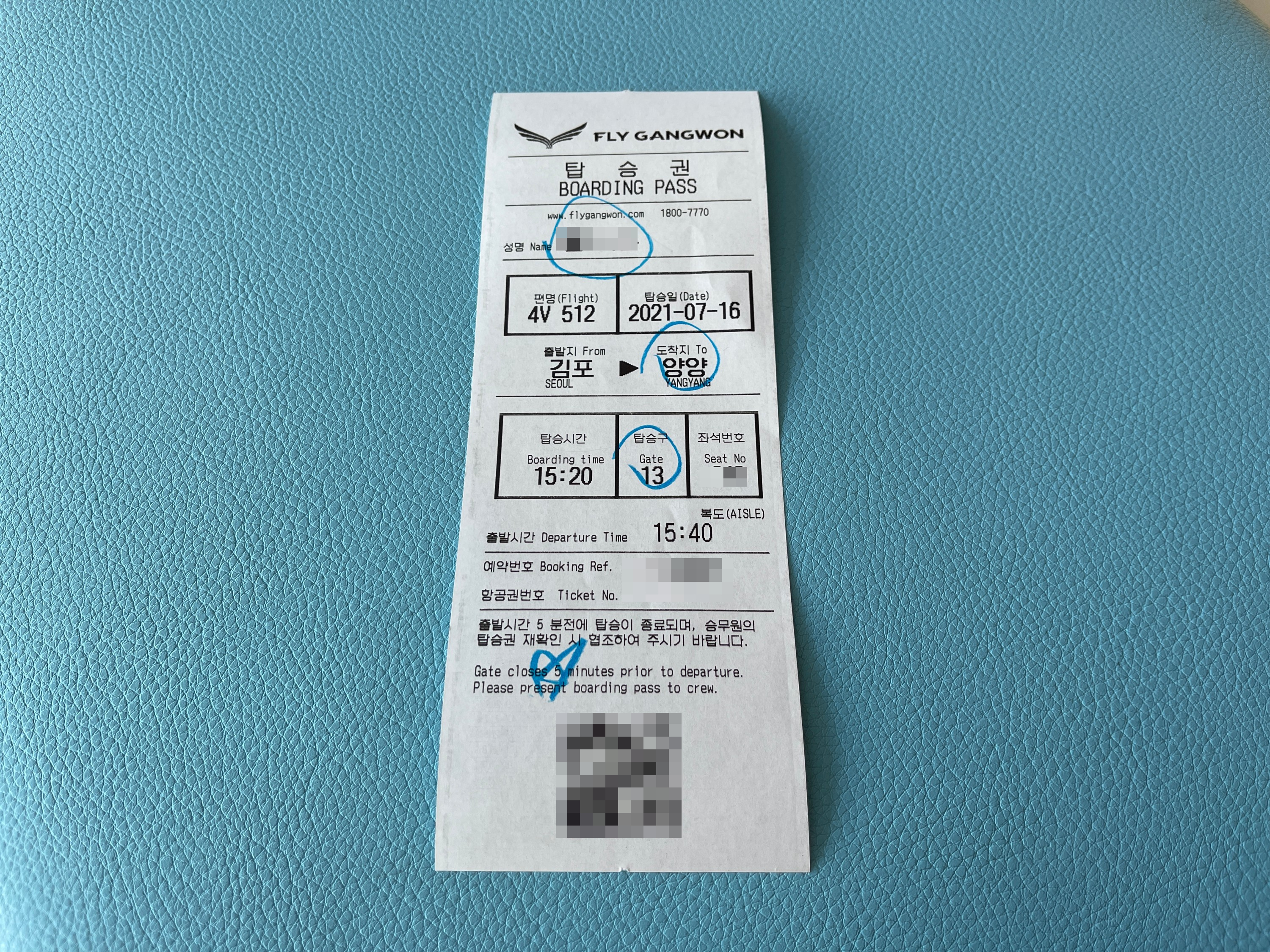 이날 탄 비행기는 플라이강원이라는 아직은 생소할 항공사에서 운행하는 비행기입니다.