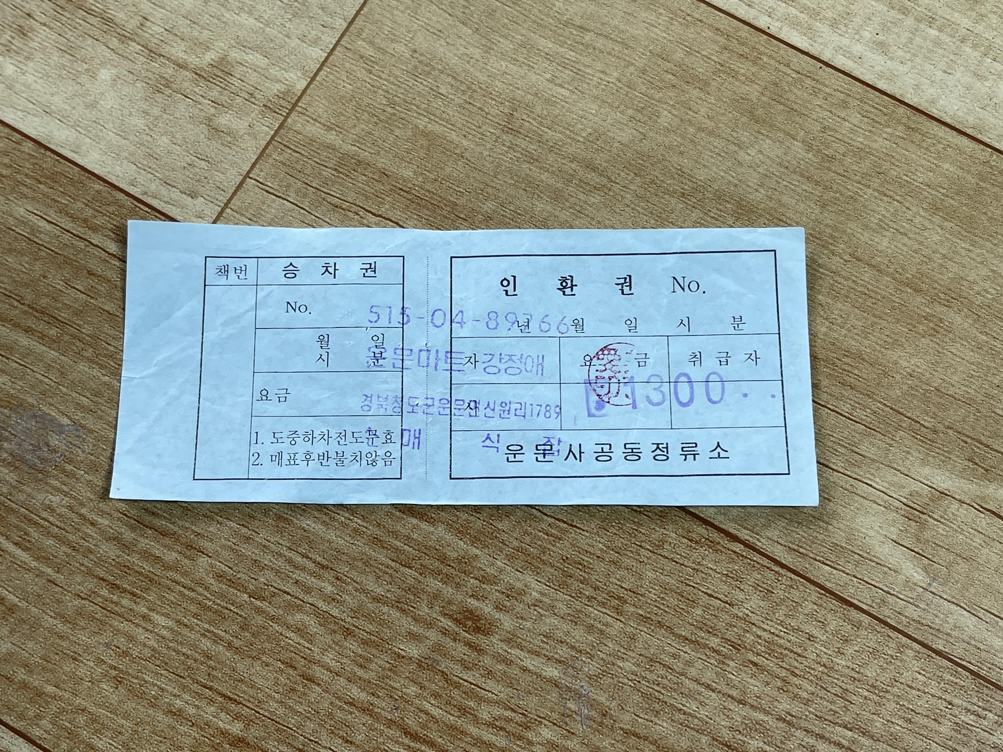 정말 오랜만에 갱지로 만든 버스표를 받아 신기해하고