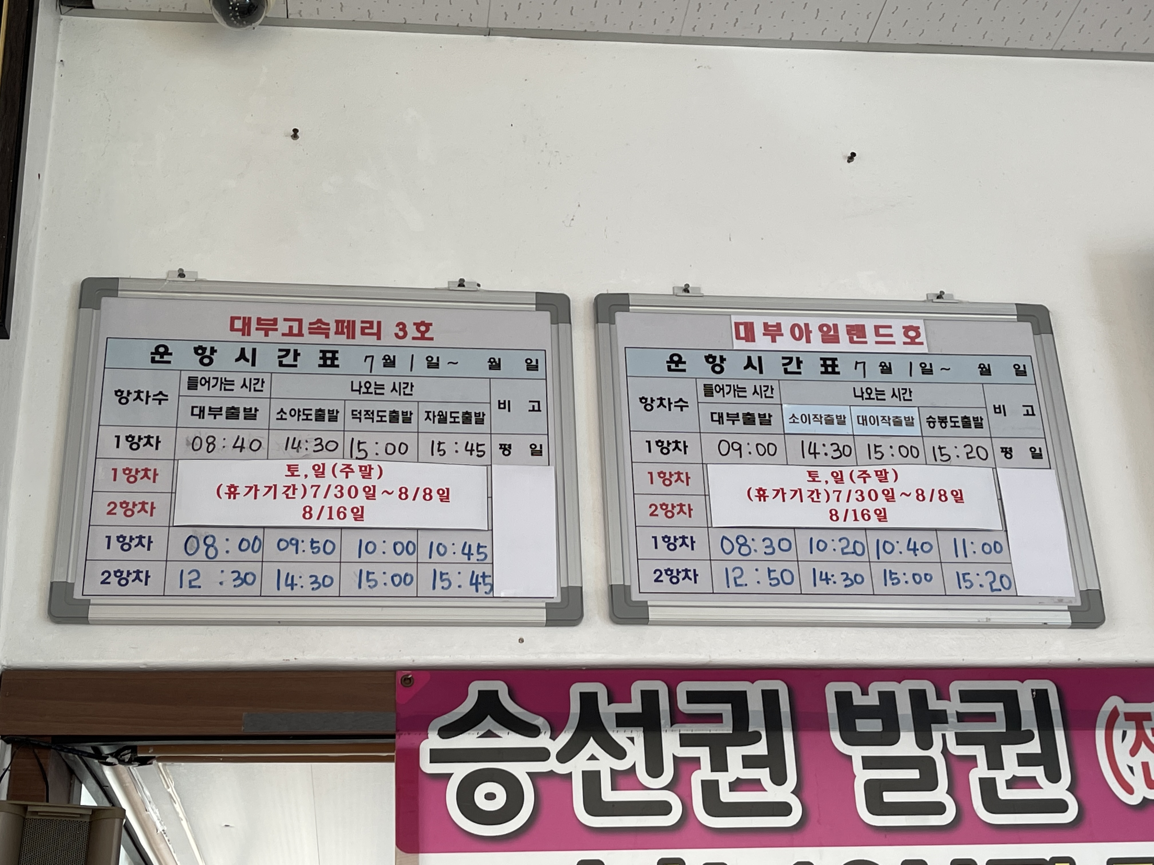 예전에는 선착장 옆 매표소에서 배표를 살 수 있었던 것 같은데