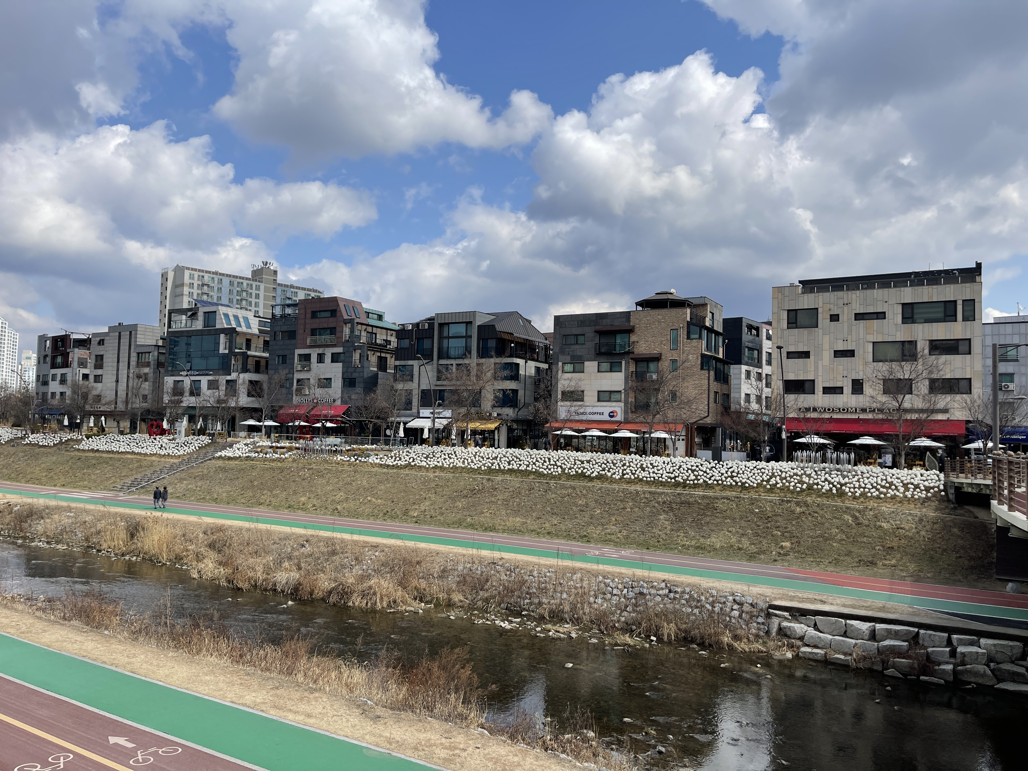 용암천을 사이에 두고 양 옆에 자리잡은 별내동 카페거리가 나오는데요.