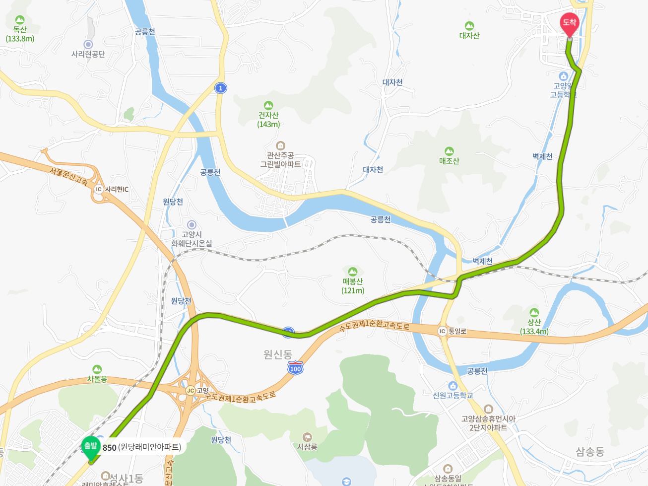 850번 시내버스를 타고 교외선과 비슷하게 달려