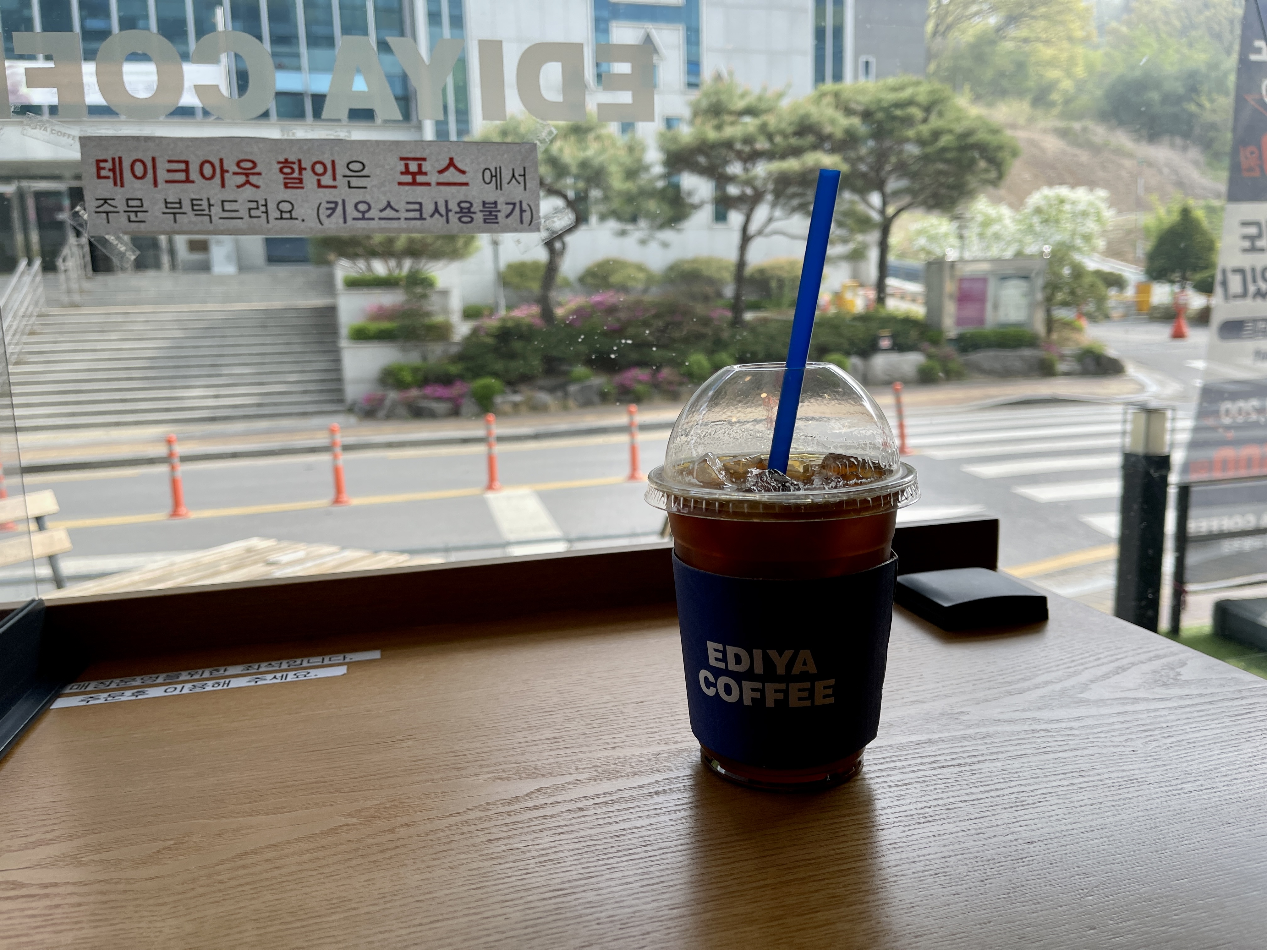 아이스 아메리카노 1잔을 주문해 새벽 4시부터 기상해 피곤한 머리를 잠시 깨우고