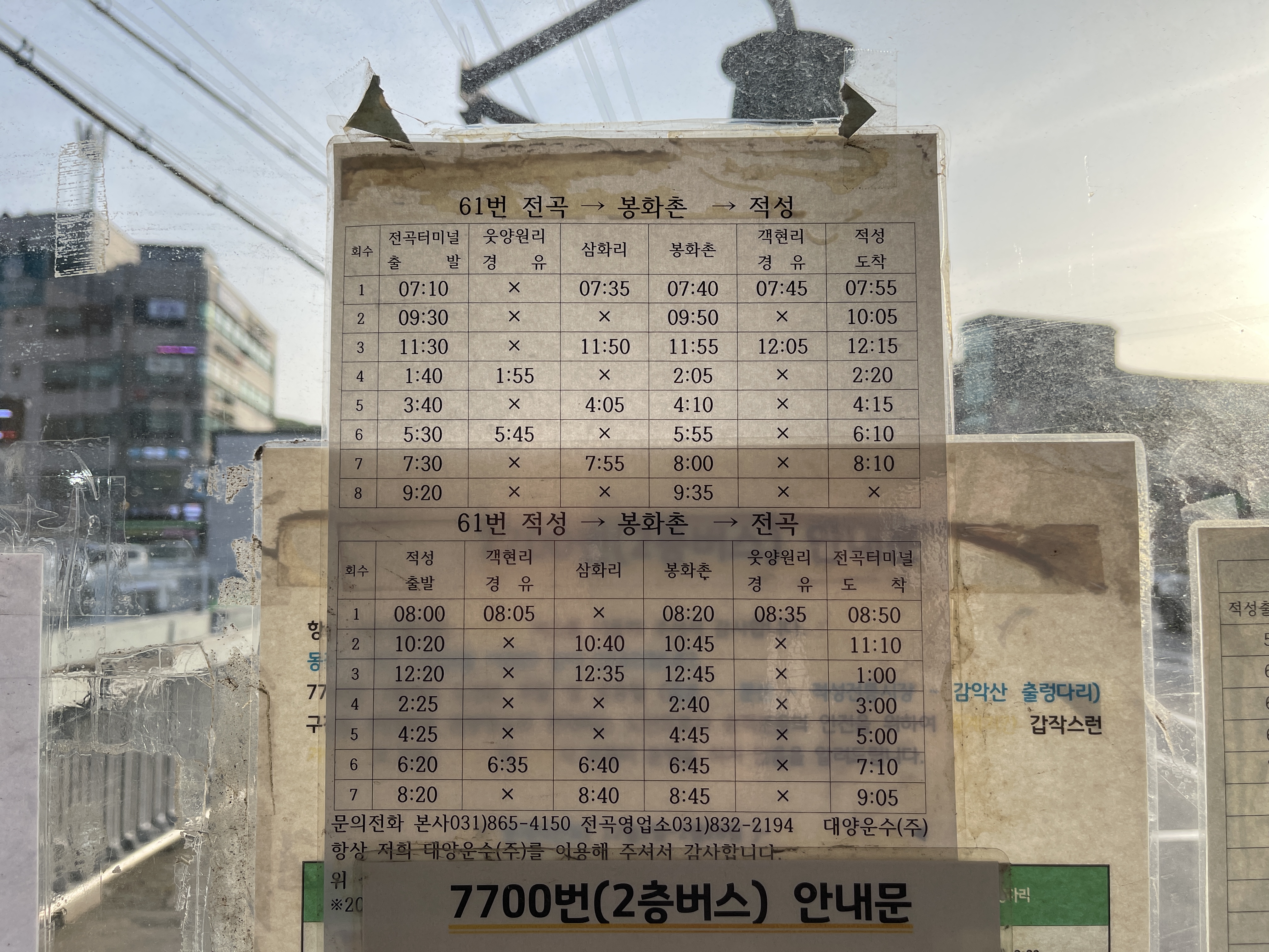 그러니 적성에서 전곡으로 가는 버스는 61번대 노선과 95번 딱 2가지입니다.