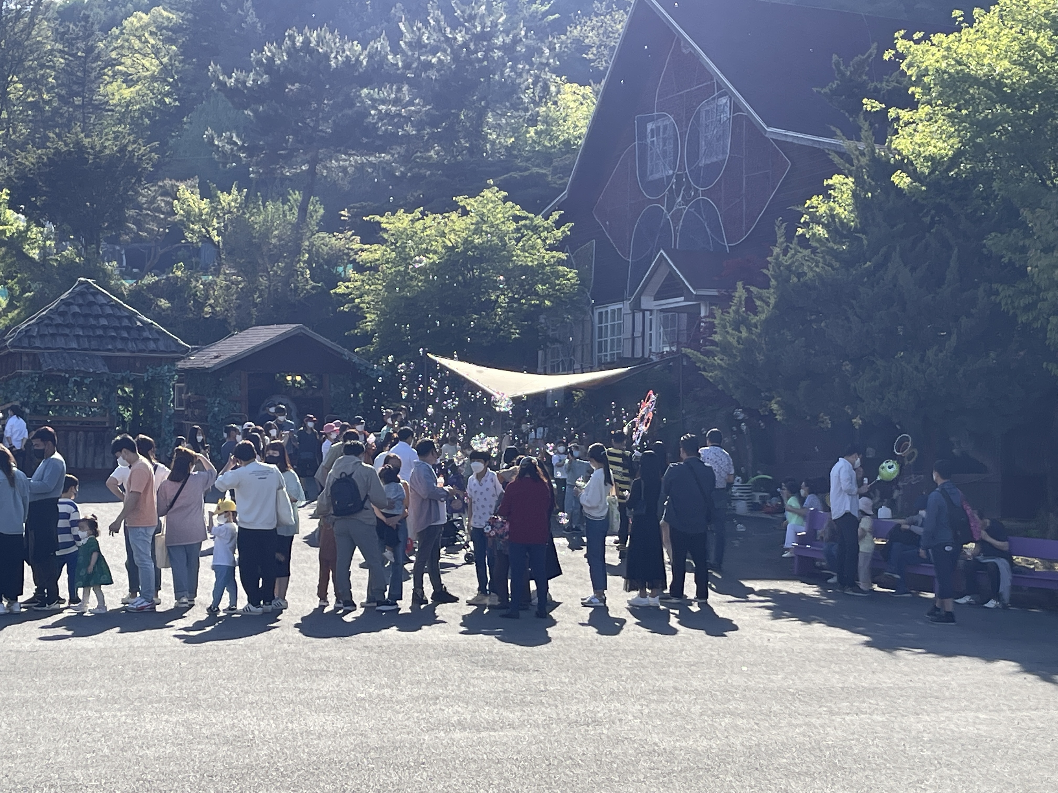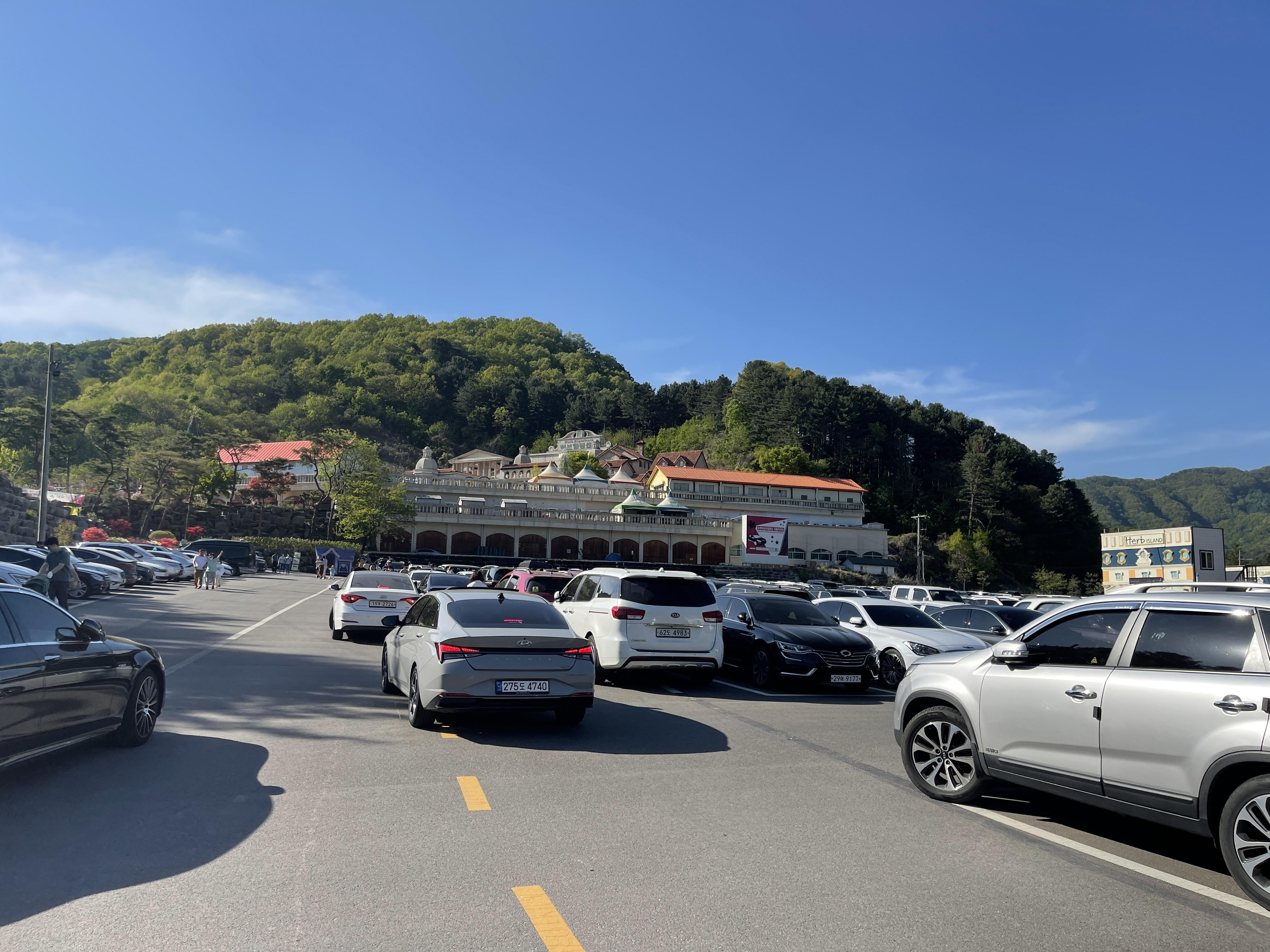 5월 5일 어린이날을 맞아 차로 가득한 주차장을 지나