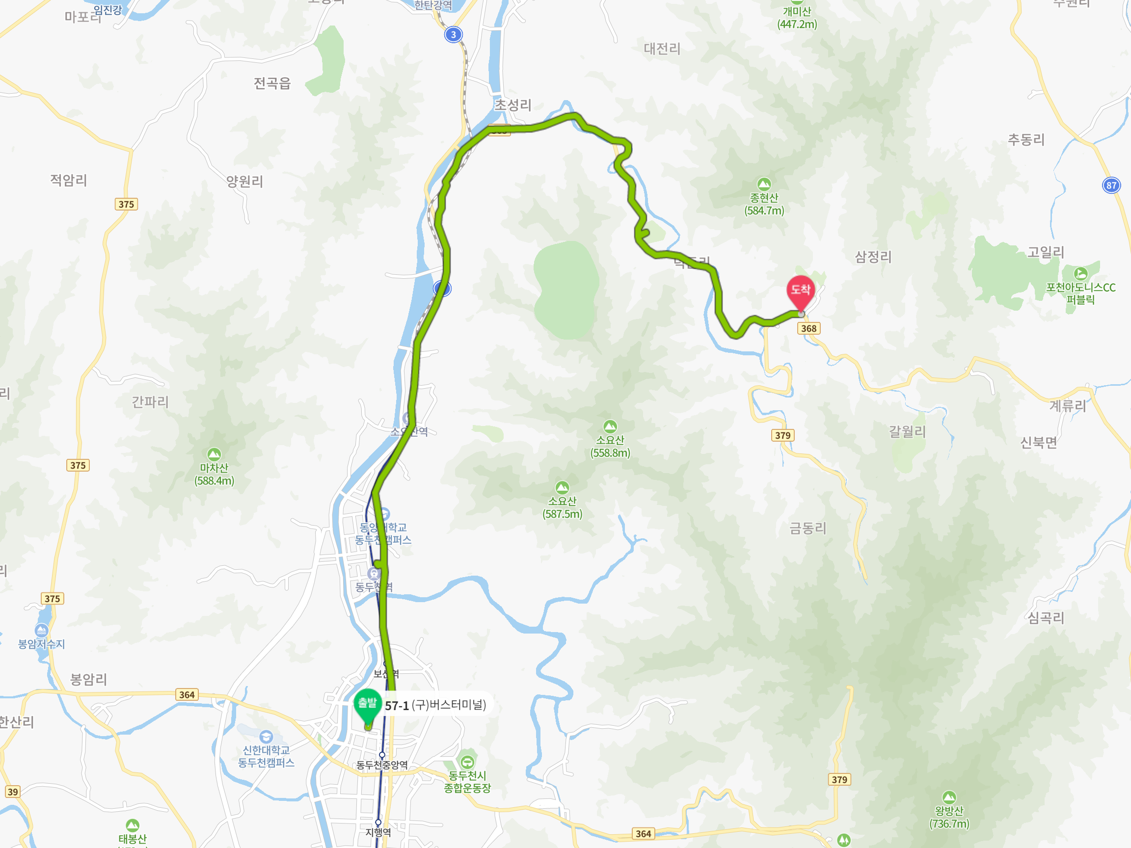 경원선 방향이 아닌 368번 지방도를 달리면서