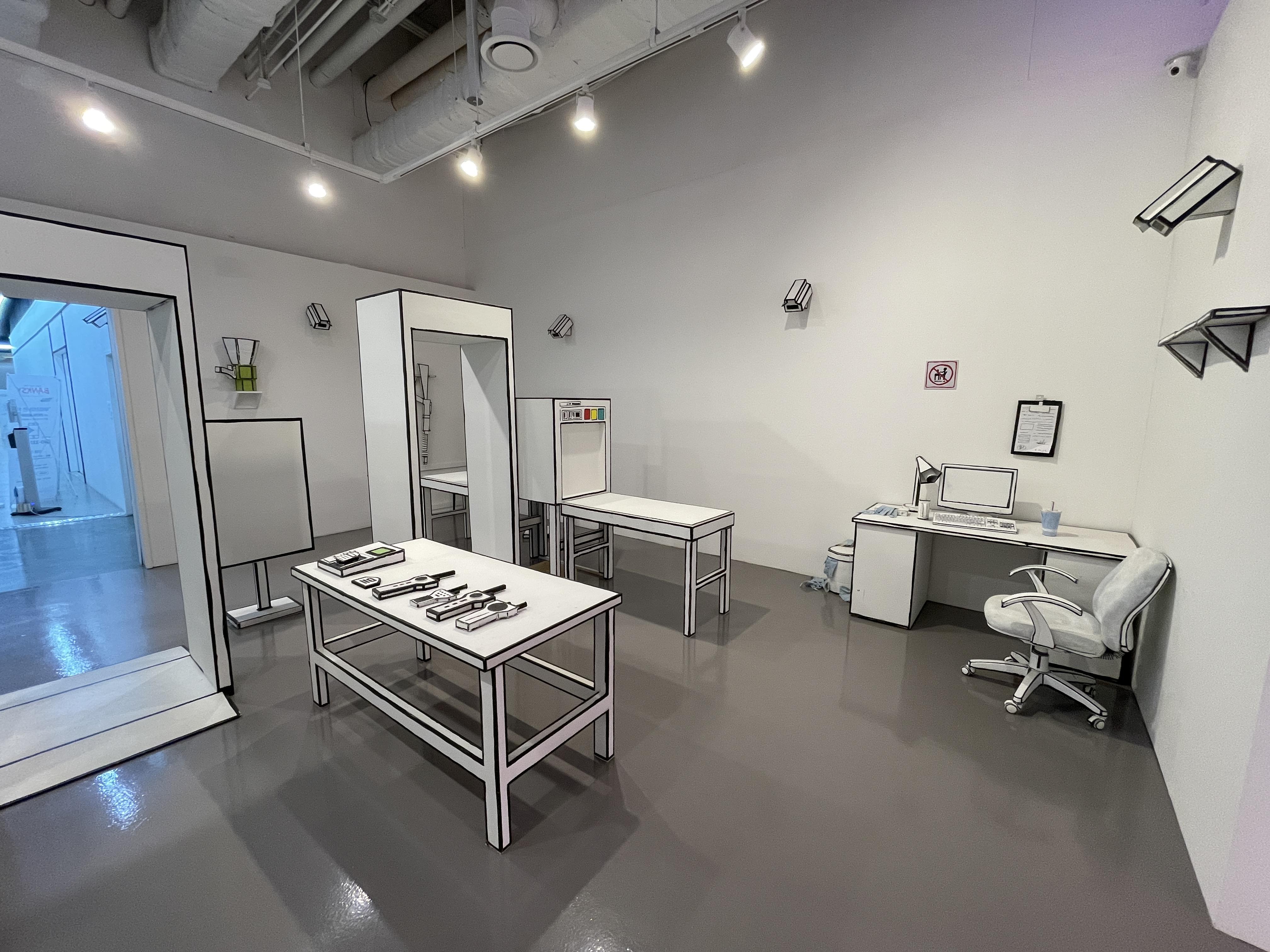 만화로 표현한 듯한 공항 검색대를 통과하면 나오는 작품들은
