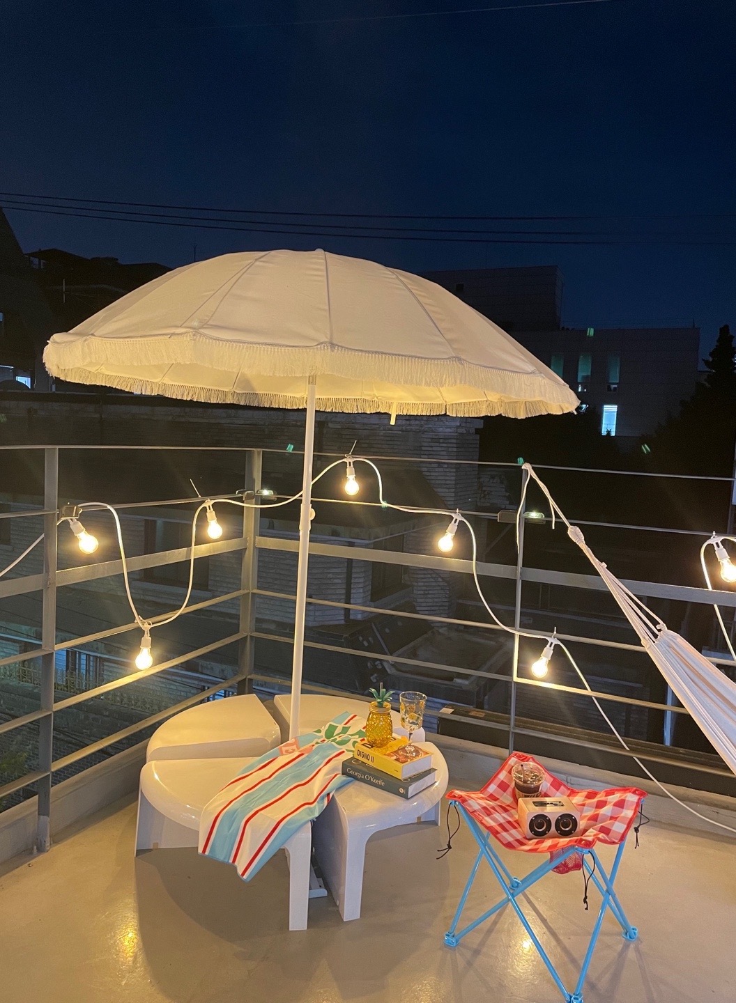 술자리에서 살짝 뒷걸음을 치고 마음에 들던 테라스로 도망쳐