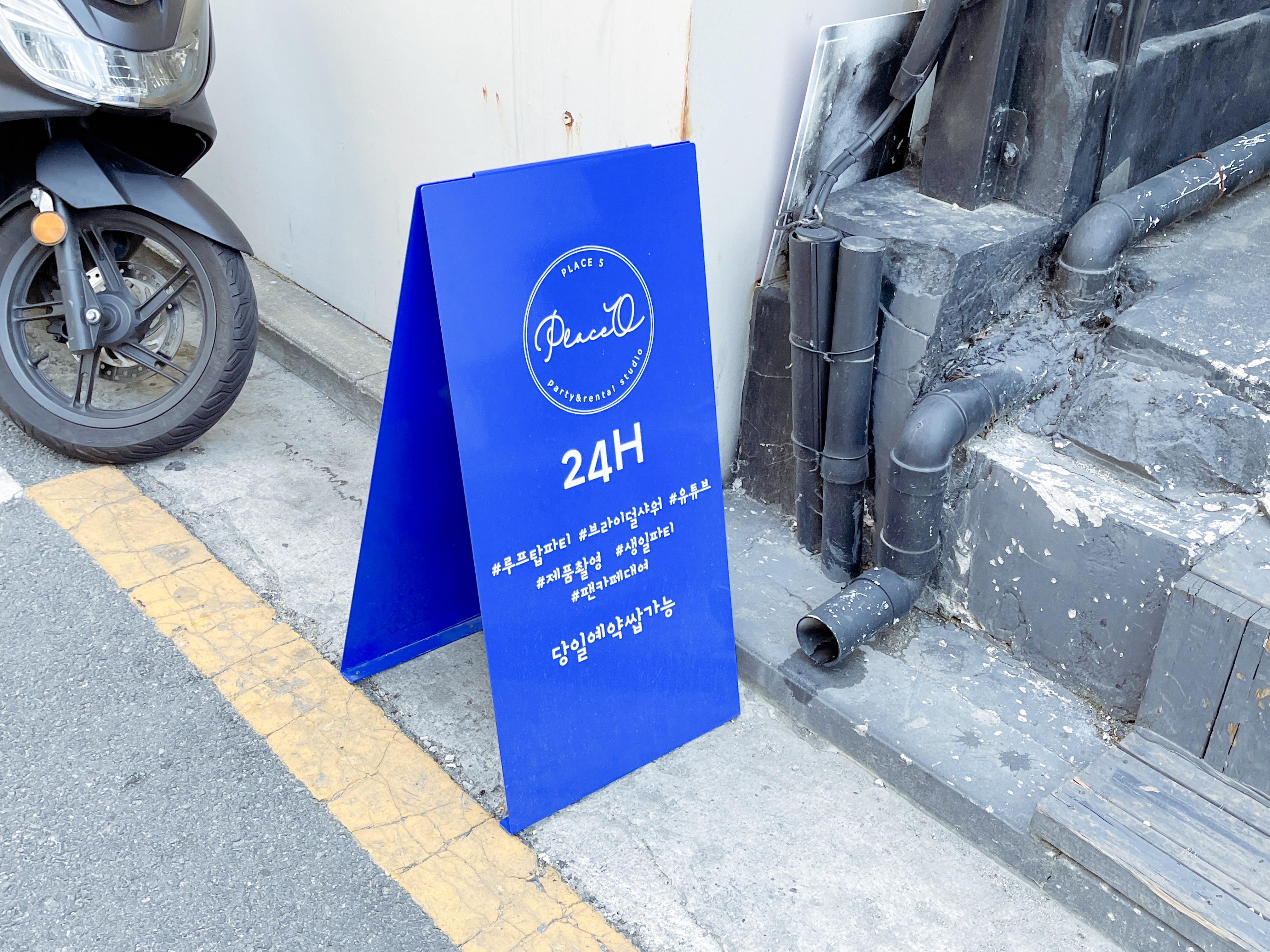 작지만 눈에 띄는 입간판에 적힌 플레이스오라는 파티룸 이름을 보고