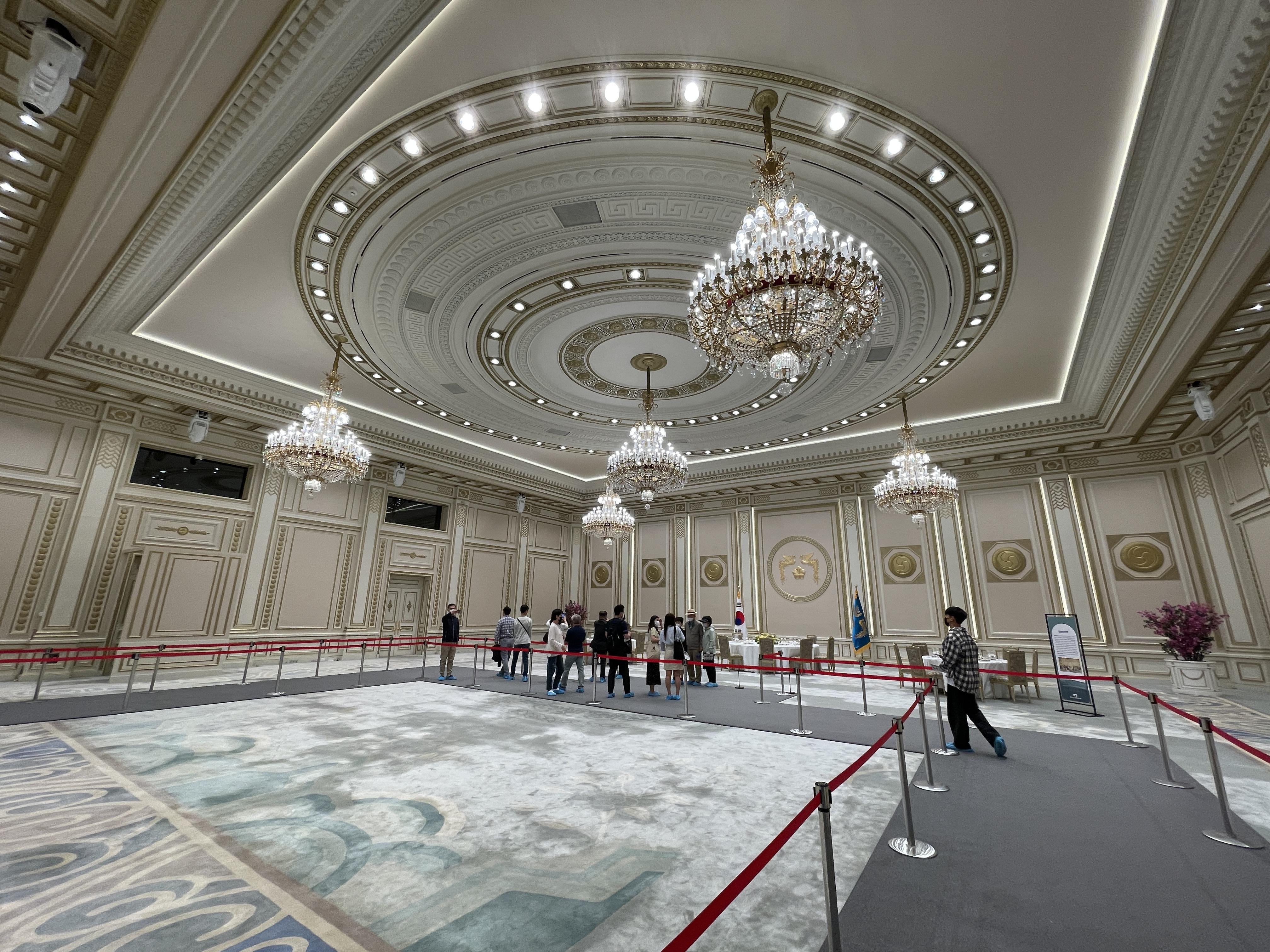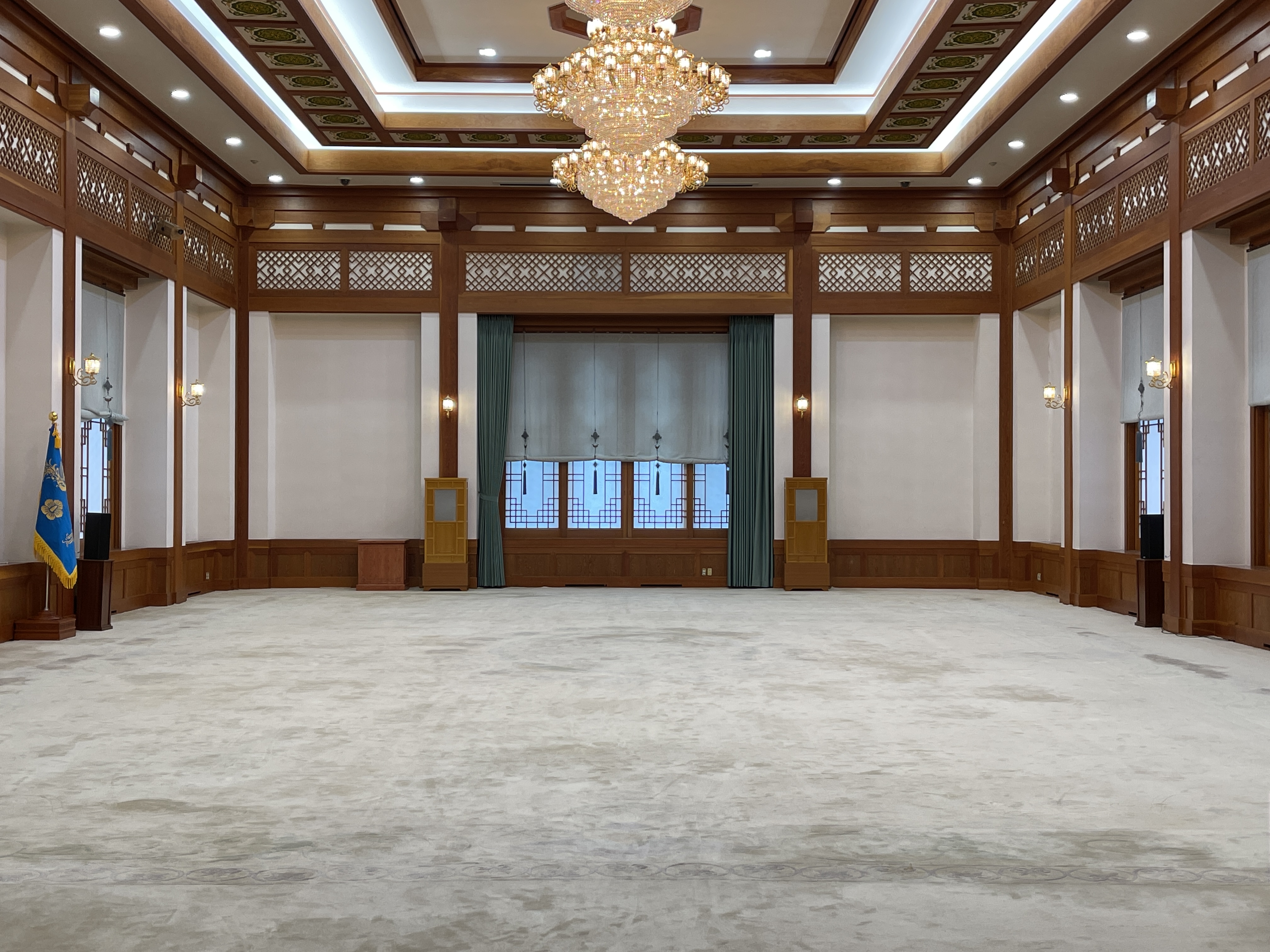 청와대를 찾은 국빈들을 맞이하는 행사나 대규모 회의가 열리던 1층 접견실로 들어갑니다.