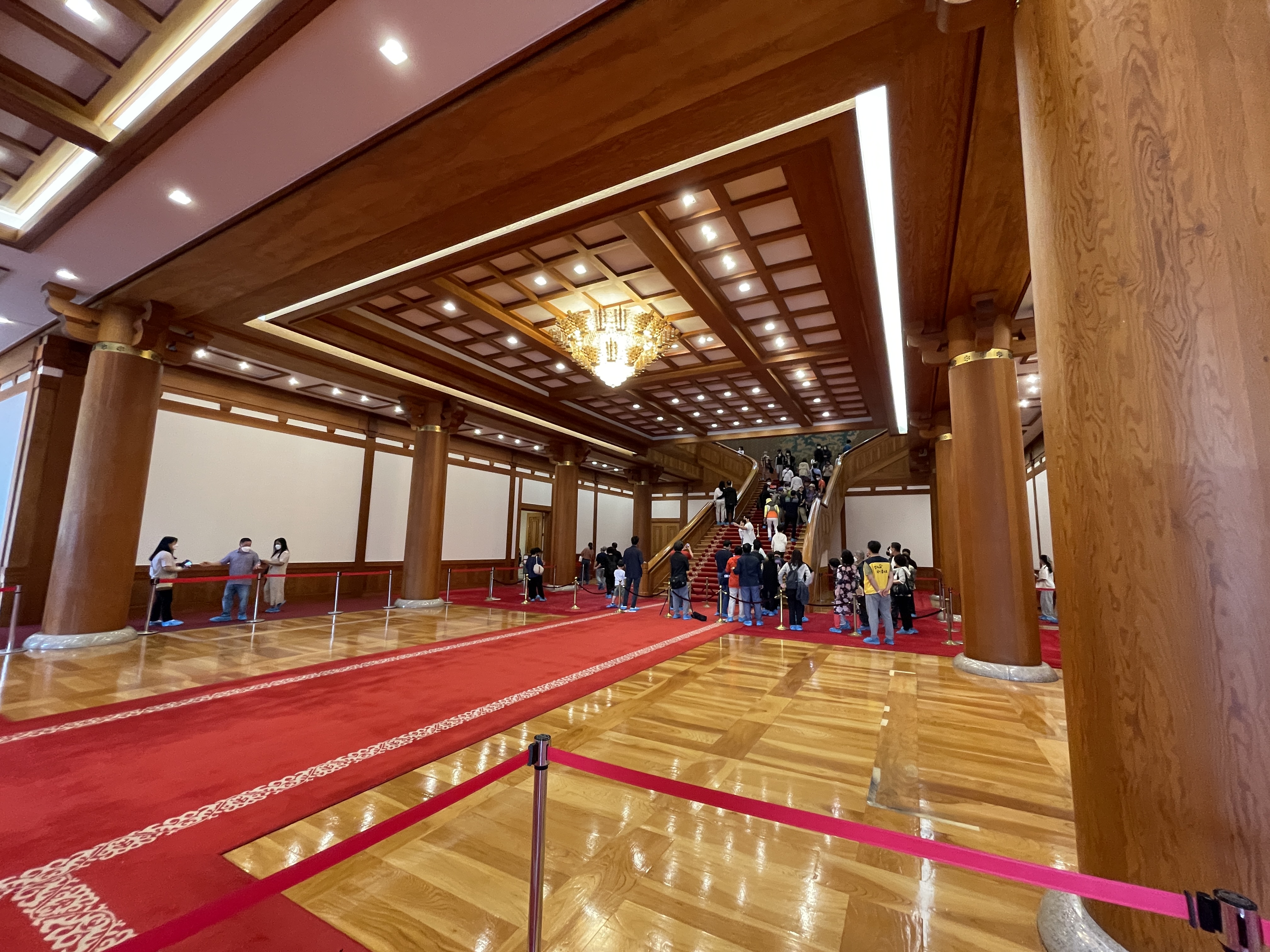 아무튼 이음새 없이 커다란 돌 하나로 만들어 매끈한 돌기둥 4개가 인상적인 영빈관 안으로 들어가