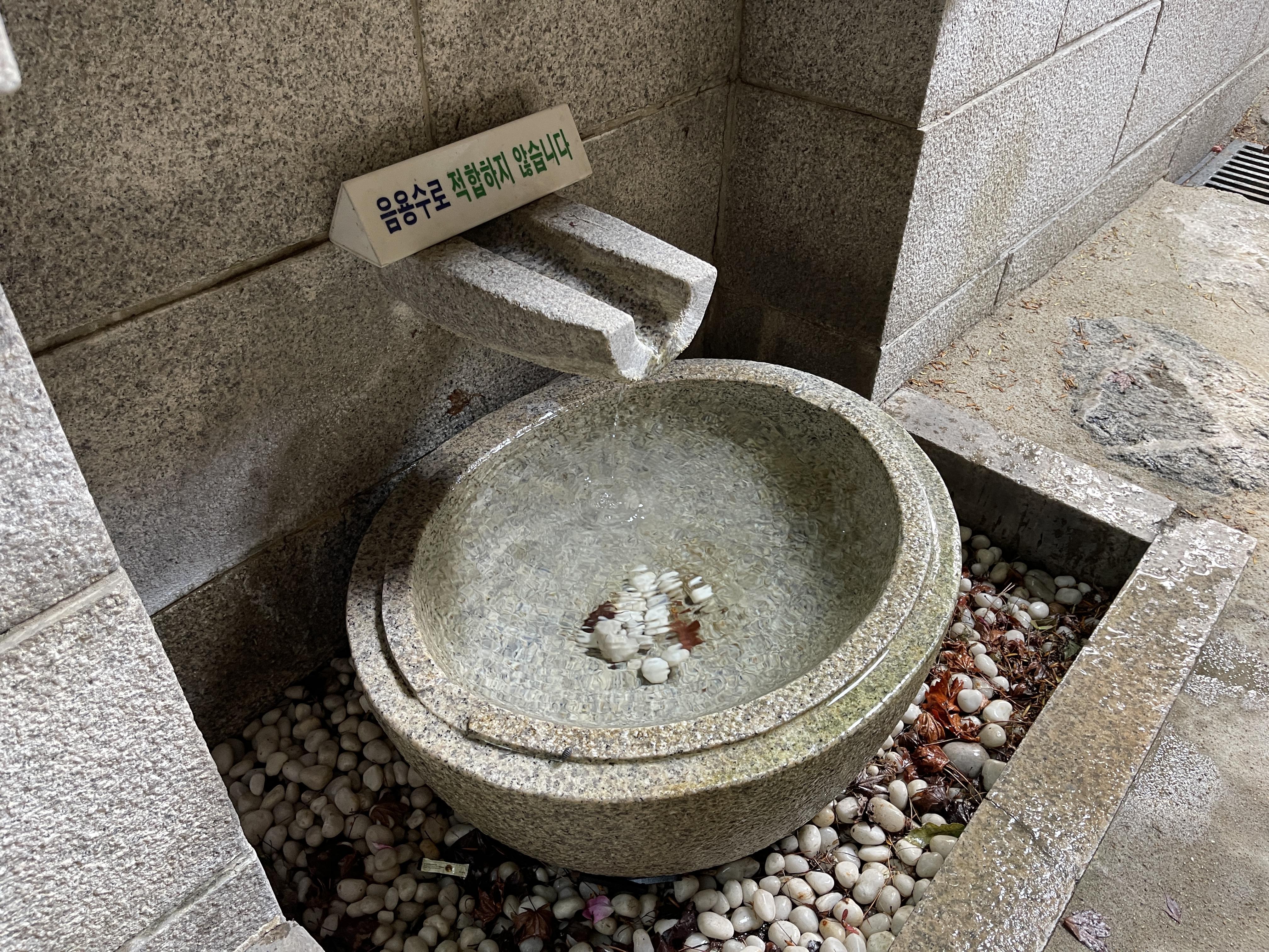 손으로 물을 받을까 하다 경고문을 보고 바로 손을 뺀 지하수를 거쳐
