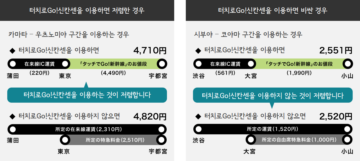 (터치로Go!신칸센은 통상요금과 동일)