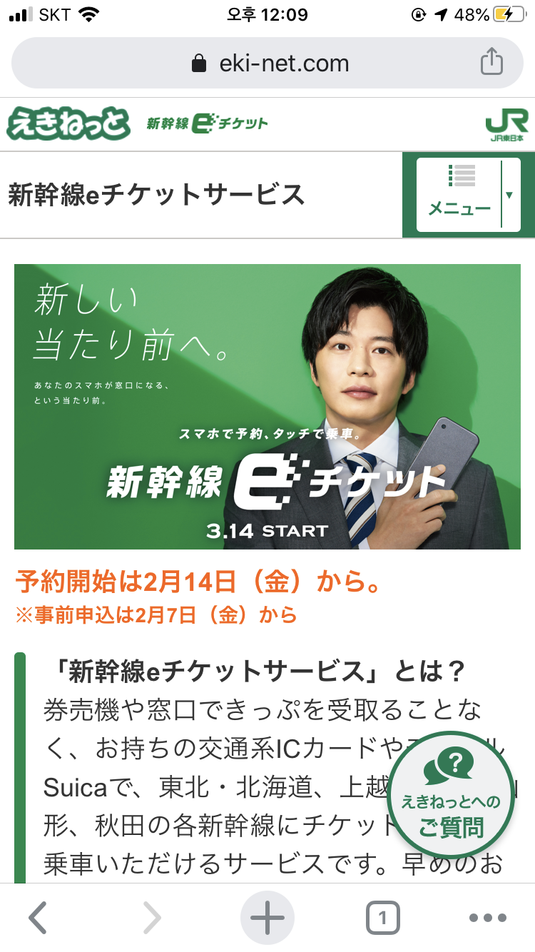 신칸센 e티켓과는 별개로