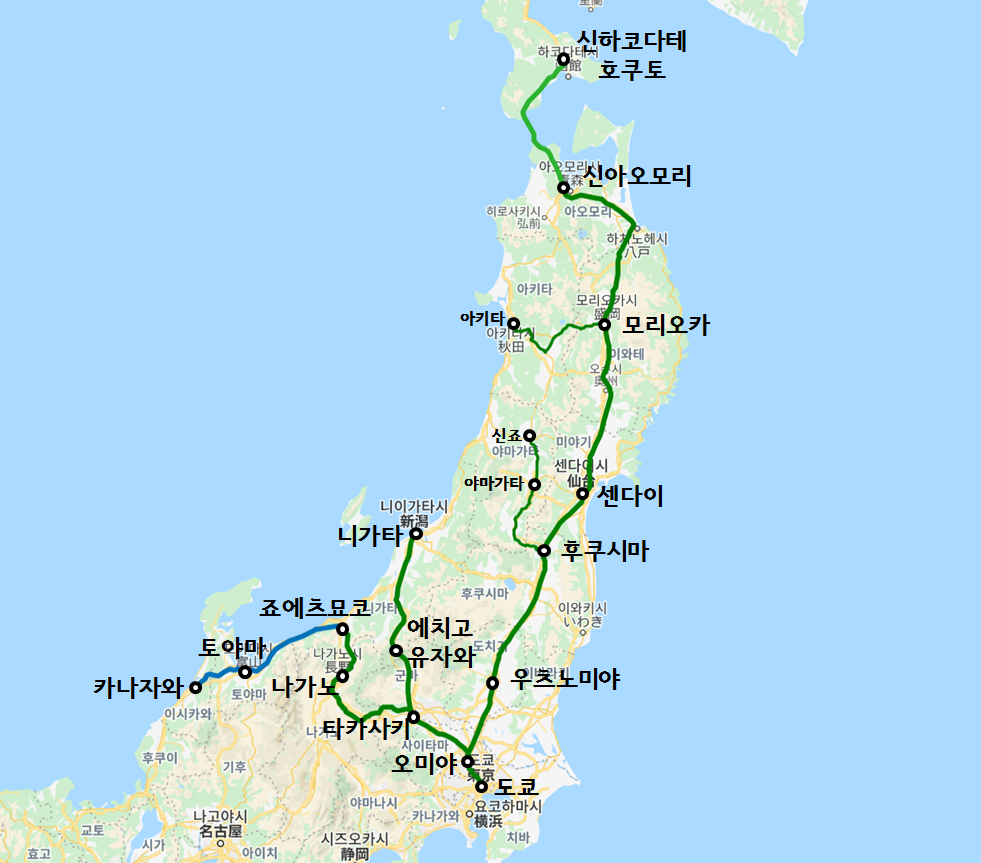 도쿄에서 신아오모리 또는 아키타까지 한 번에 가는 것은 안되는데